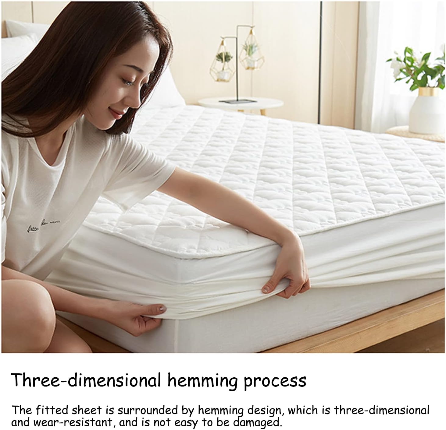 ★Beautiful patterns: compared to ordinary fitted sheets or mattress covers, our mattress protectors have 3D patterns, we use high temperature presses instead of sewing lines, which is a new technology, so the lying layer is a 3D pattern without sewing lines, after washing, the mattress cover bounces back beautifully and is fluffy soft.