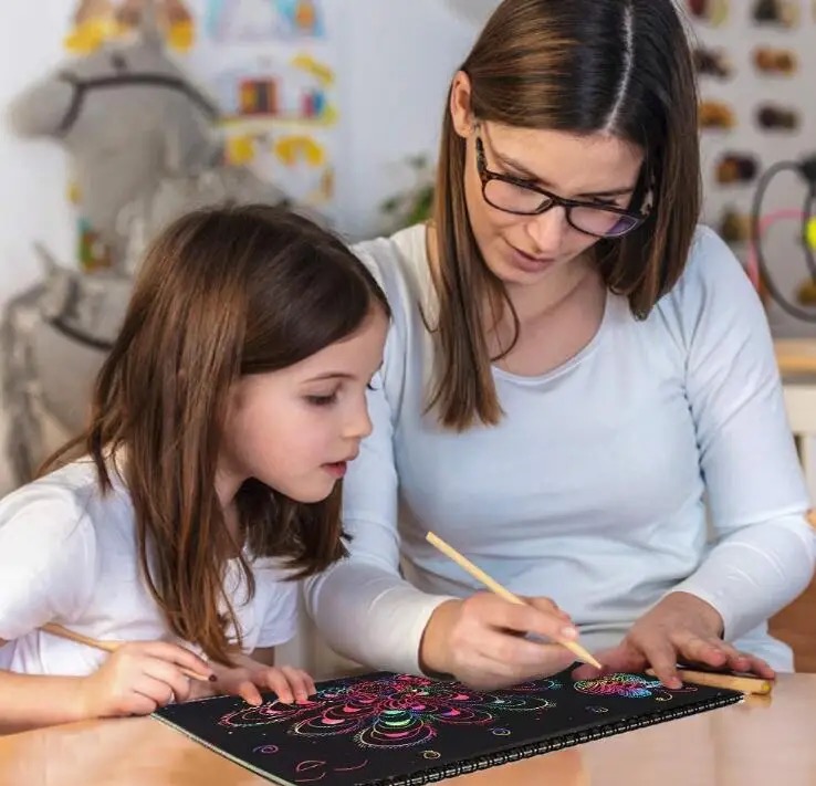 Educational Toys: Kids can draw a variety of patterns by limitless imagination to stimulate their infinite creativity by using the rainbow scratch paper, also a very good way to train kids hands-on skills, intelligence development