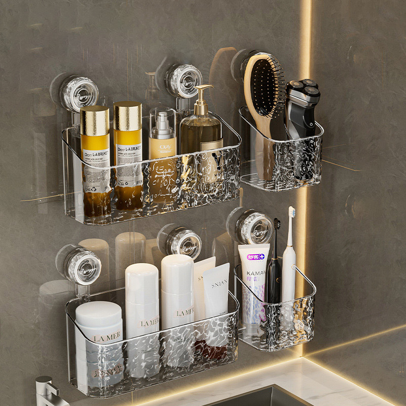 The shower caddy suction cup large aperture design allows for ventilation and easy cleaning, this storage rack features a transparent design that allows you to easily view the items stored on the rack while showering.
