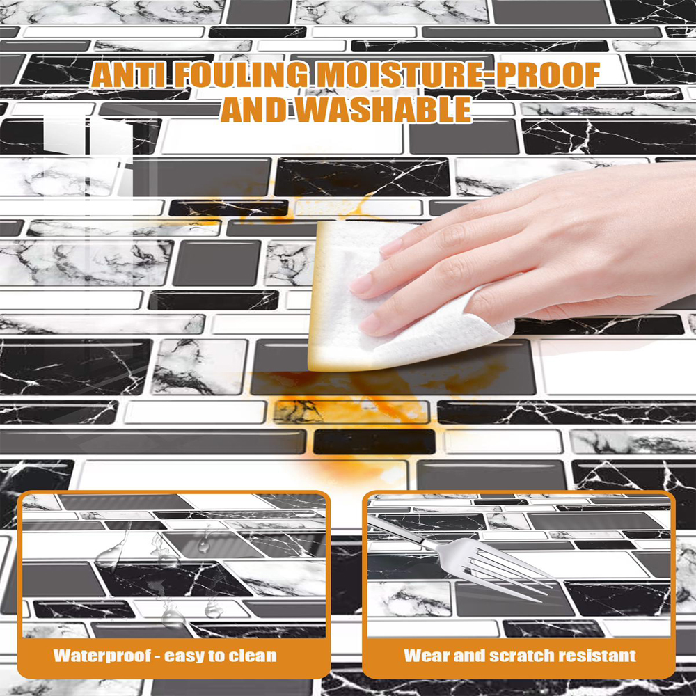 • Mosaic Design: The mosaic tile design of these wall stickers is eye-catching and stylish. It is a great way to add texture and depth to your walls.