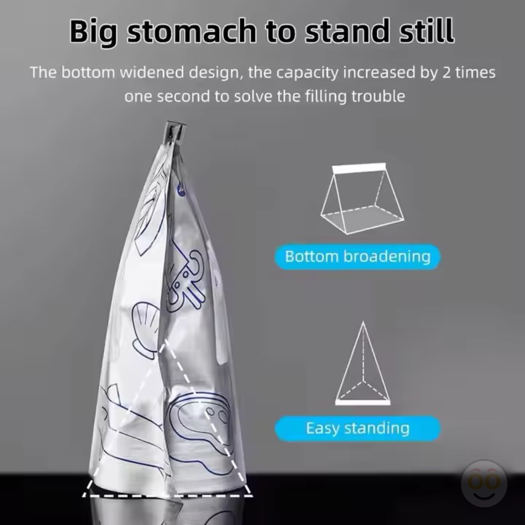 Designed Stand Up, Zip lock, Clear Front, with tear notches Usage 1. With Tear Notch, it has an ingenious tear mark to assist in opening 2. Re-sealable, the zip lock bag is easy closed and recycling, can be used over and over again Warm Tips: These are food or dried goods pouches, we do not suggest you use them to fill in water, other fluid or oily food.
