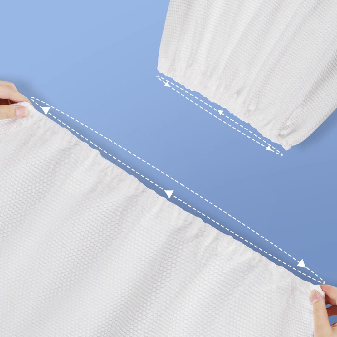 Crafted from a lightweight and hypoallergenic fabric, ensuring comfort and minimizing potential skin irritations, suitable for single use.