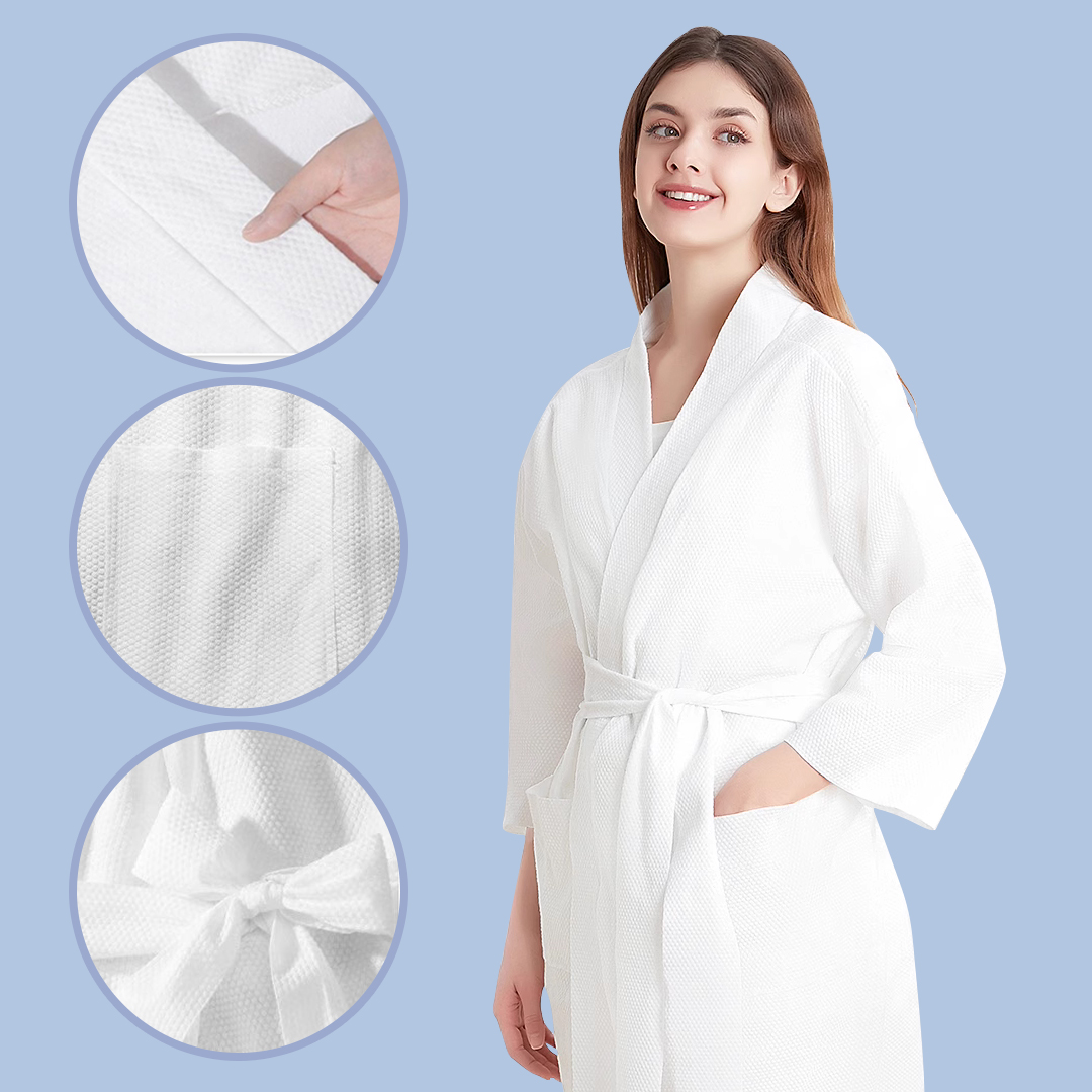 • Perfect for use in hospitality settings like hotels and resorts, wellness centers, or healthcare environments where single-use garments can significantly improve hygiene.