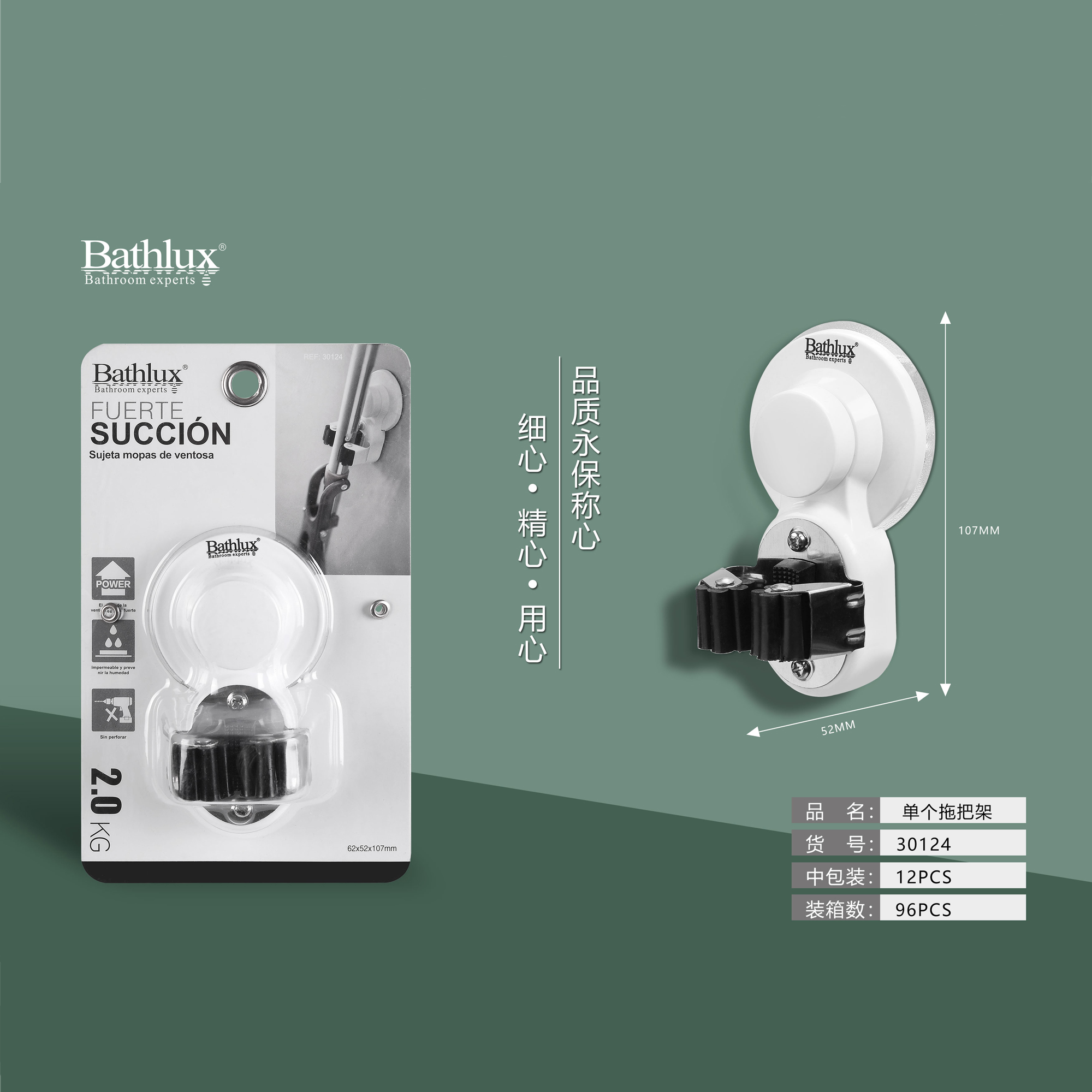 • Description: Bathlux Mop Rack Holder With Suction Cup