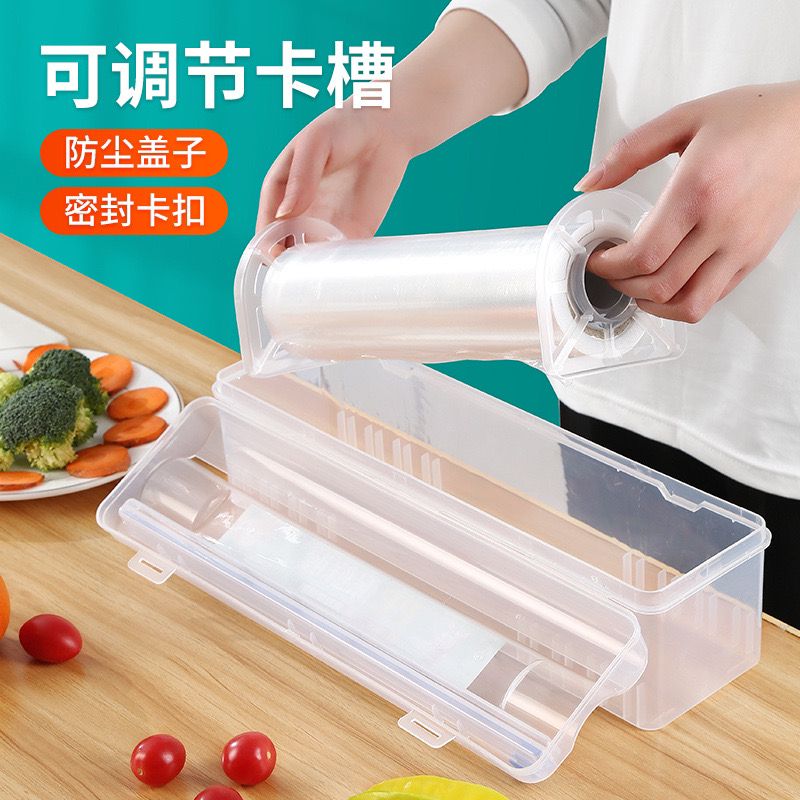 1. Open the cutting box and install the plastic wrap on the bracket.