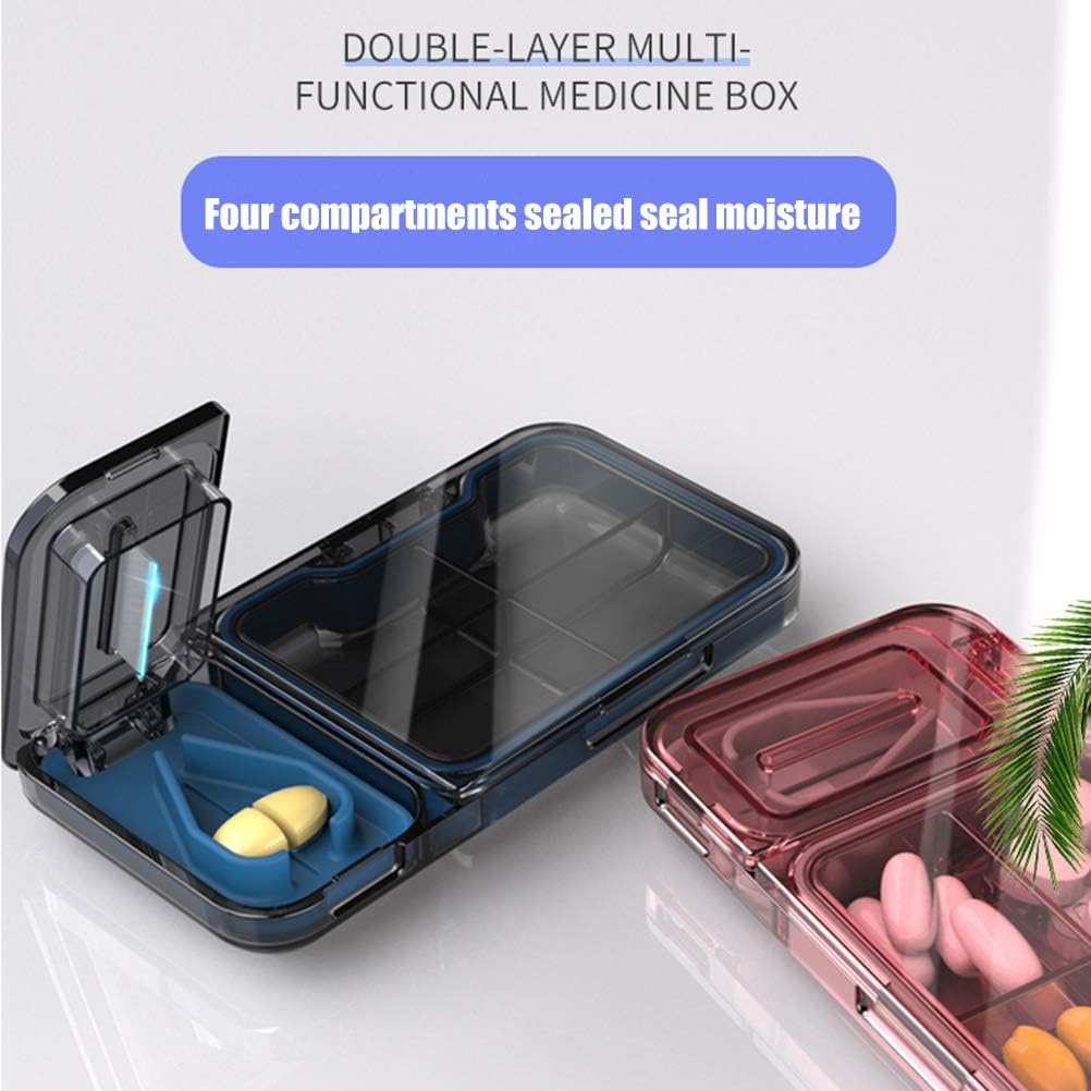 2.【Sharp Stainless Steel Blade & Precise Cut Pills】 This premium pill crusher divider adopts extremely sharp stainless steel blade to ensure every clean, accurate cutting. You can cut the tablets into 1/2, 1/4, 1/8 size according to the dose you need to take. Unique V-shaped slot can hold different size tablets (0.11"- 0.75") and cut them perfectly, which is very economical and practical for people taking multiple medications. Acedada pill box will be your best medication assistant!