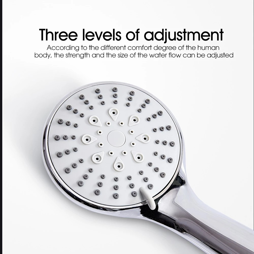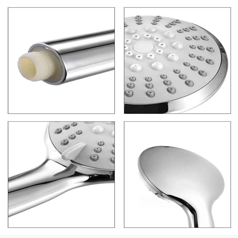Round Head Design: The shower head has a circular shape with multiple small nozzles arranged in a pattern.