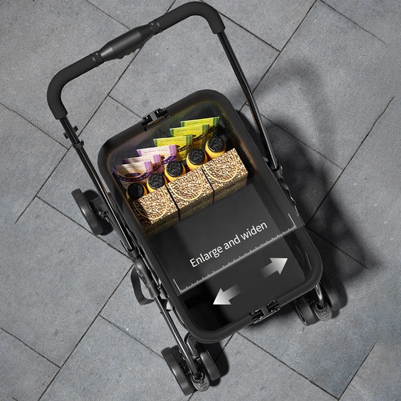 2 in 1 Detachable Design: The portable shopping cart has two layers of independent space to meet the needs of different items. The upper layer is detachable, suitable for storing delicate items, while the lower layer is designed for heavy objects, providing more flexible organization space for shopping and highlighting the thoughtful design.