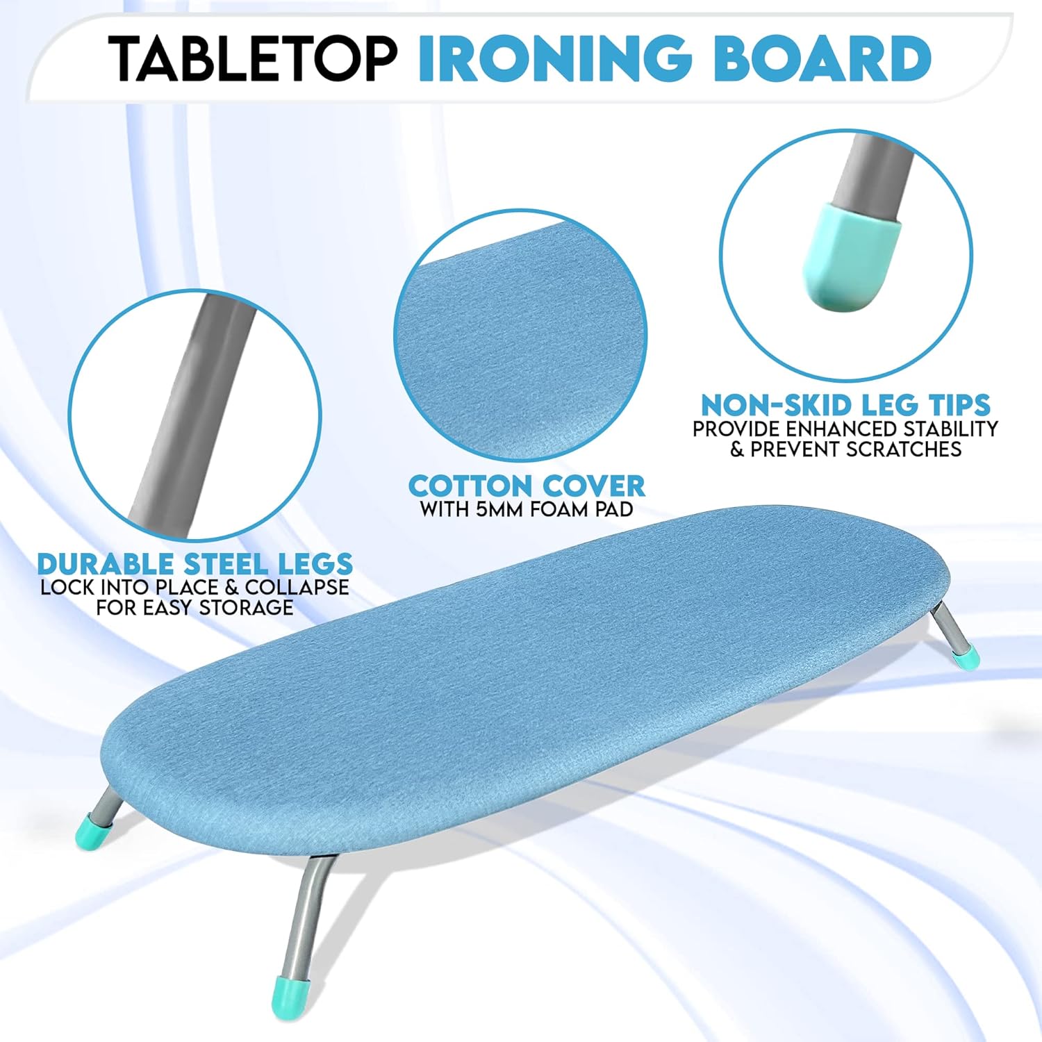 Sturdy & Stable: Durable steel legs with adjustable silicone covers provide a non-slip, stable ironing surface.
