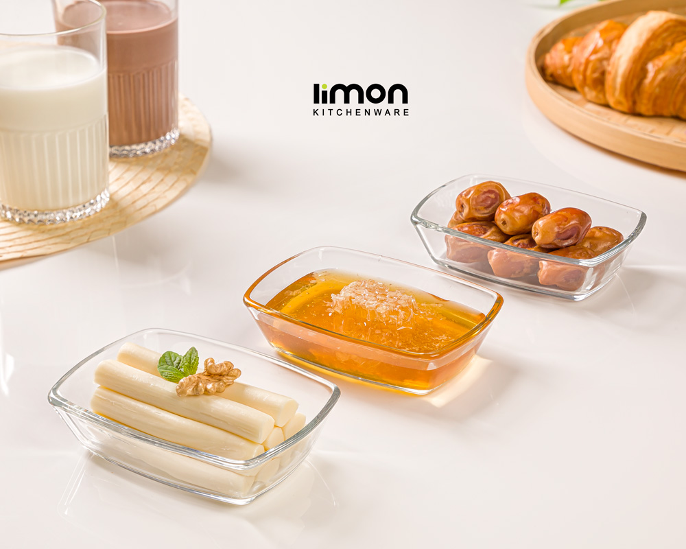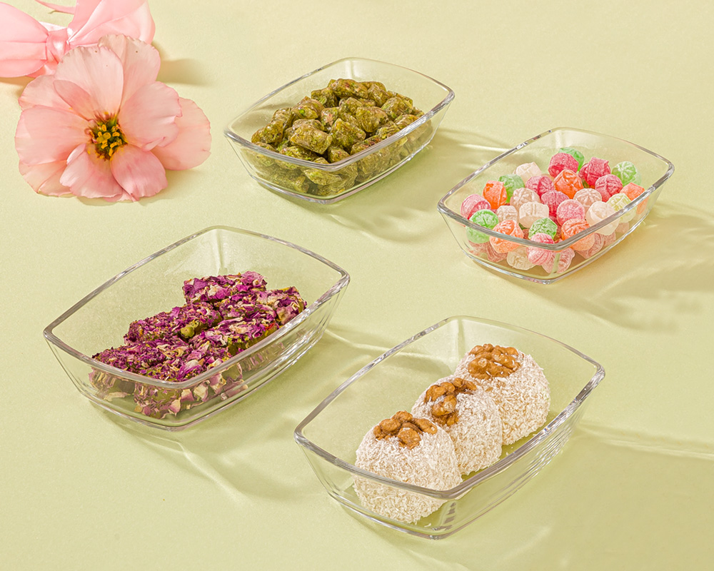 Elegant Design: Rectangular serving bowl set made of durable glass.