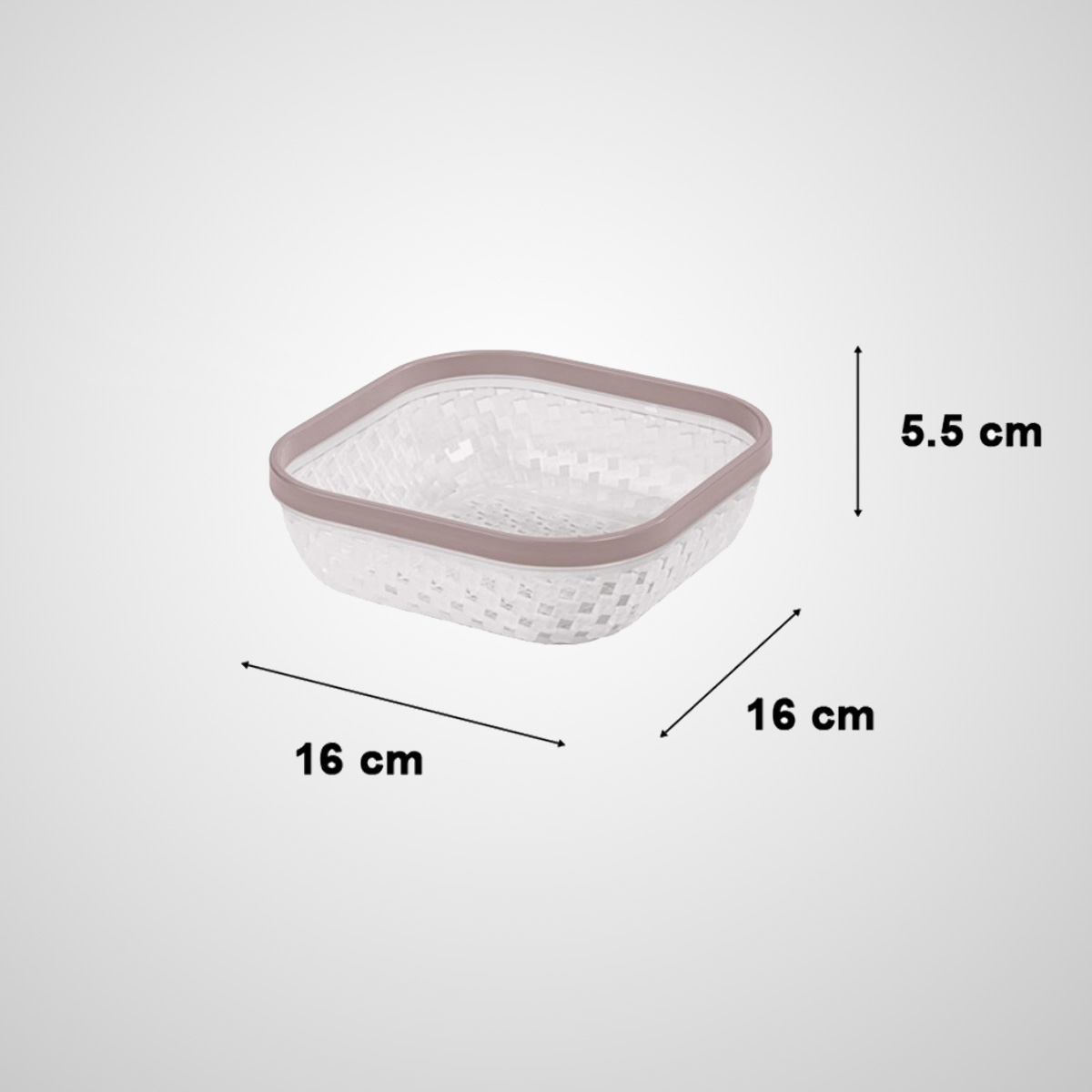 Elegant Design: Square-shaped baskets with a textured, semi-transparent plastic design and colorful edges in white, grey, beige, and light pink.