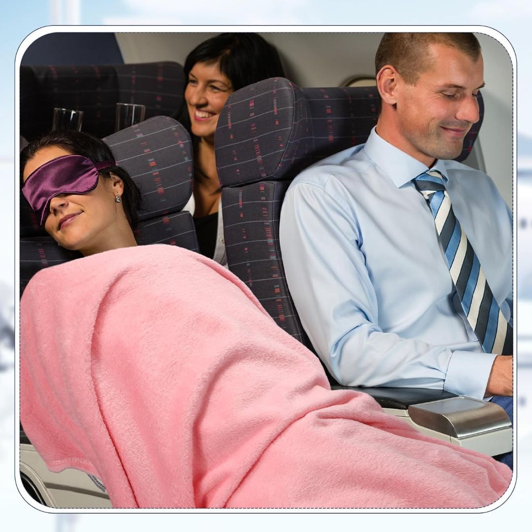 Convenient Packaging: Includes 2 travel blankets with matching pillowcase bags (pink & dark blue); each blanket measures 150*120 cm, perfect for long flights.