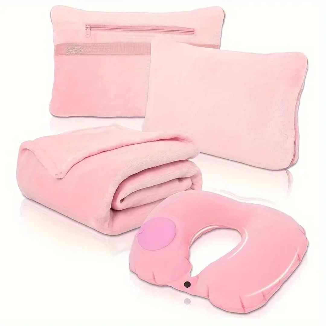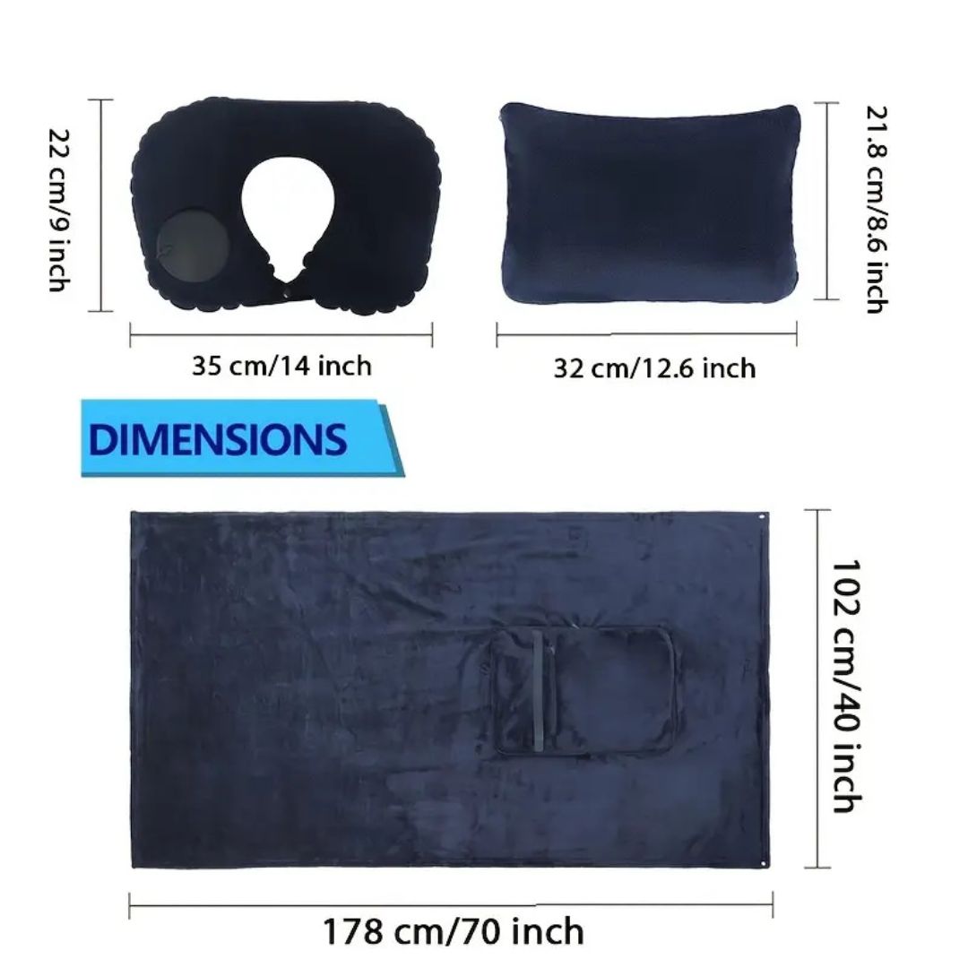 Inflatable Travel Pillow: Includes a soft fabric neck pillow with a built-in inflator pump for hygienic inflation—no mouth inflation needed. Quick deflation via a transparent air valve.