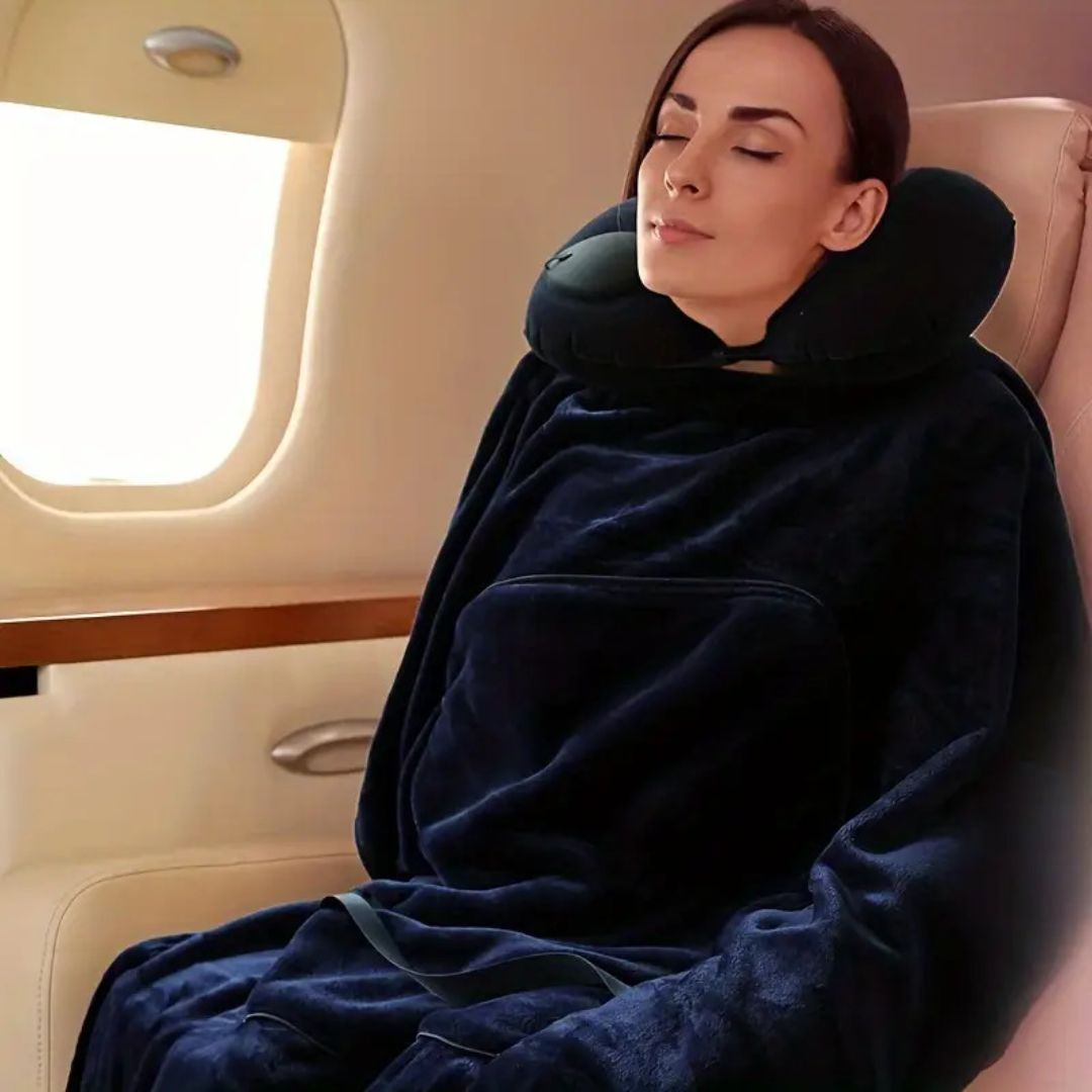 Ultra-Soft Travel Blanket: Crafted from premium microfiber fleece polyester for superior softness, this 70" x 40" blanket features adjustable snaps around the neck and shoulders to keep it in place. Machine washable for easy care.