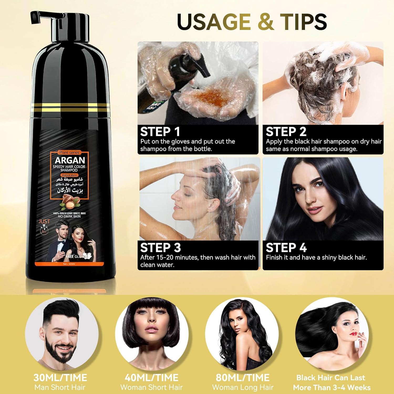 Step 2: Apply the black hair shampoo to dry hair, just like using a regular shampoo.