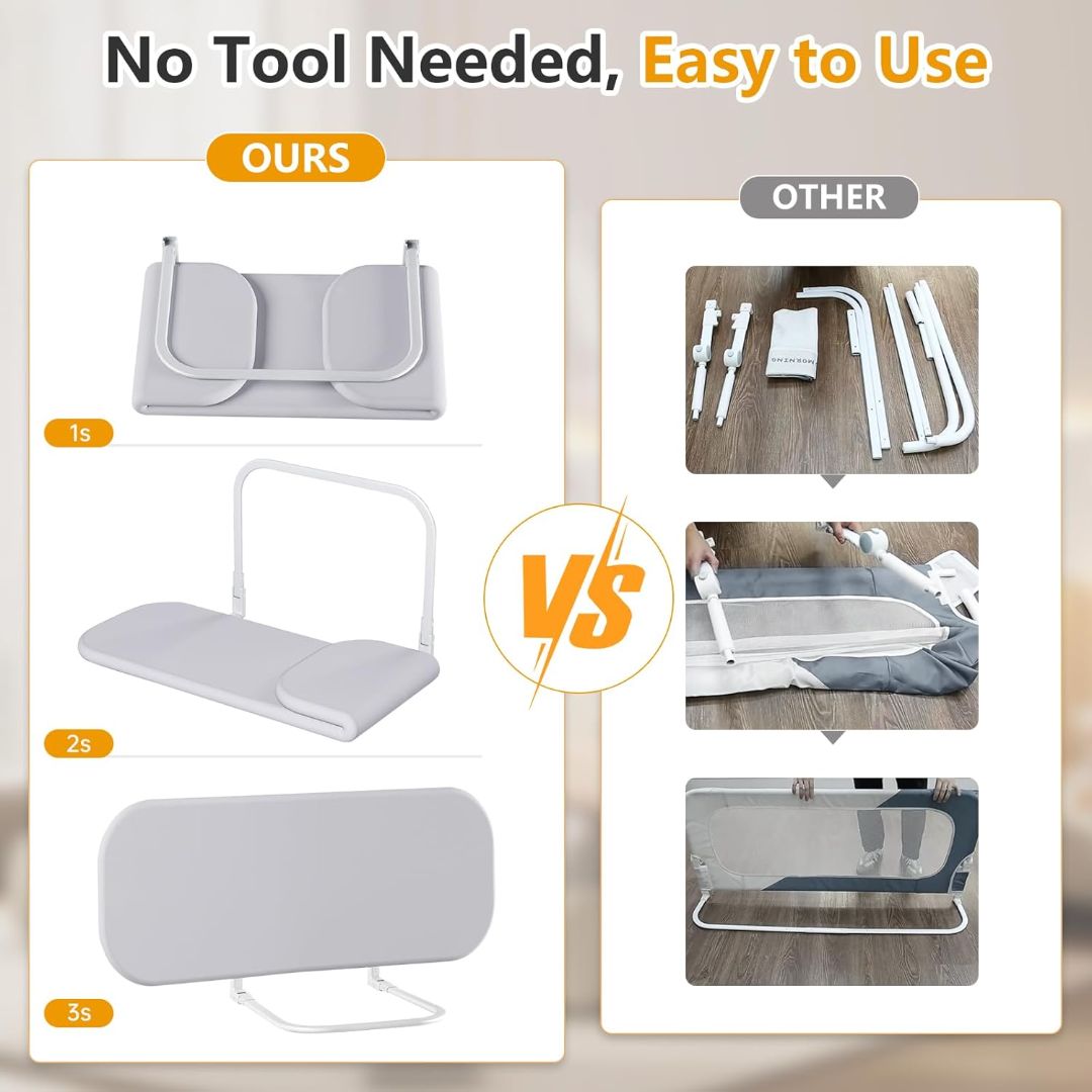 Easy to Assemble: No tools required for setup; the bed rail is simple to assemble and install.