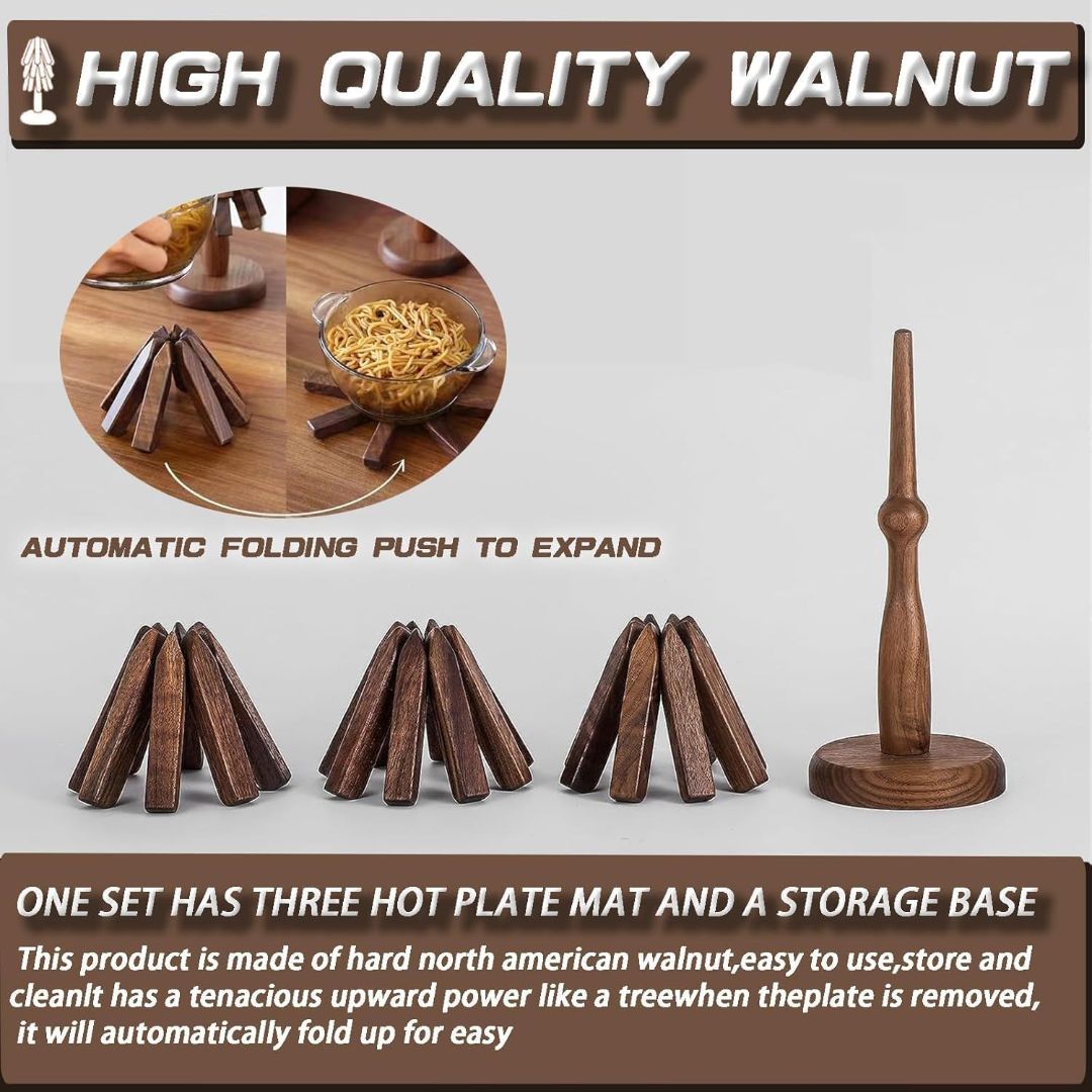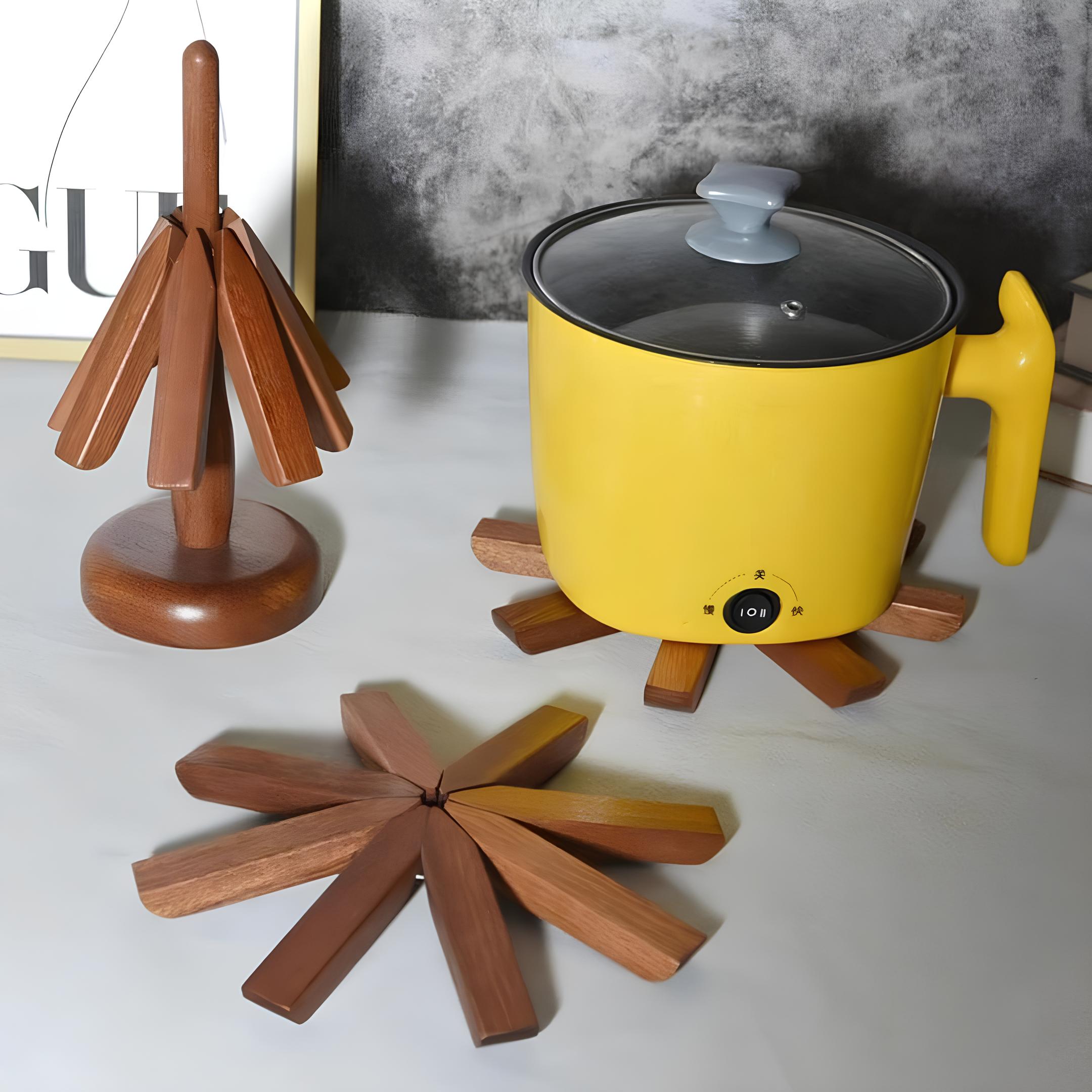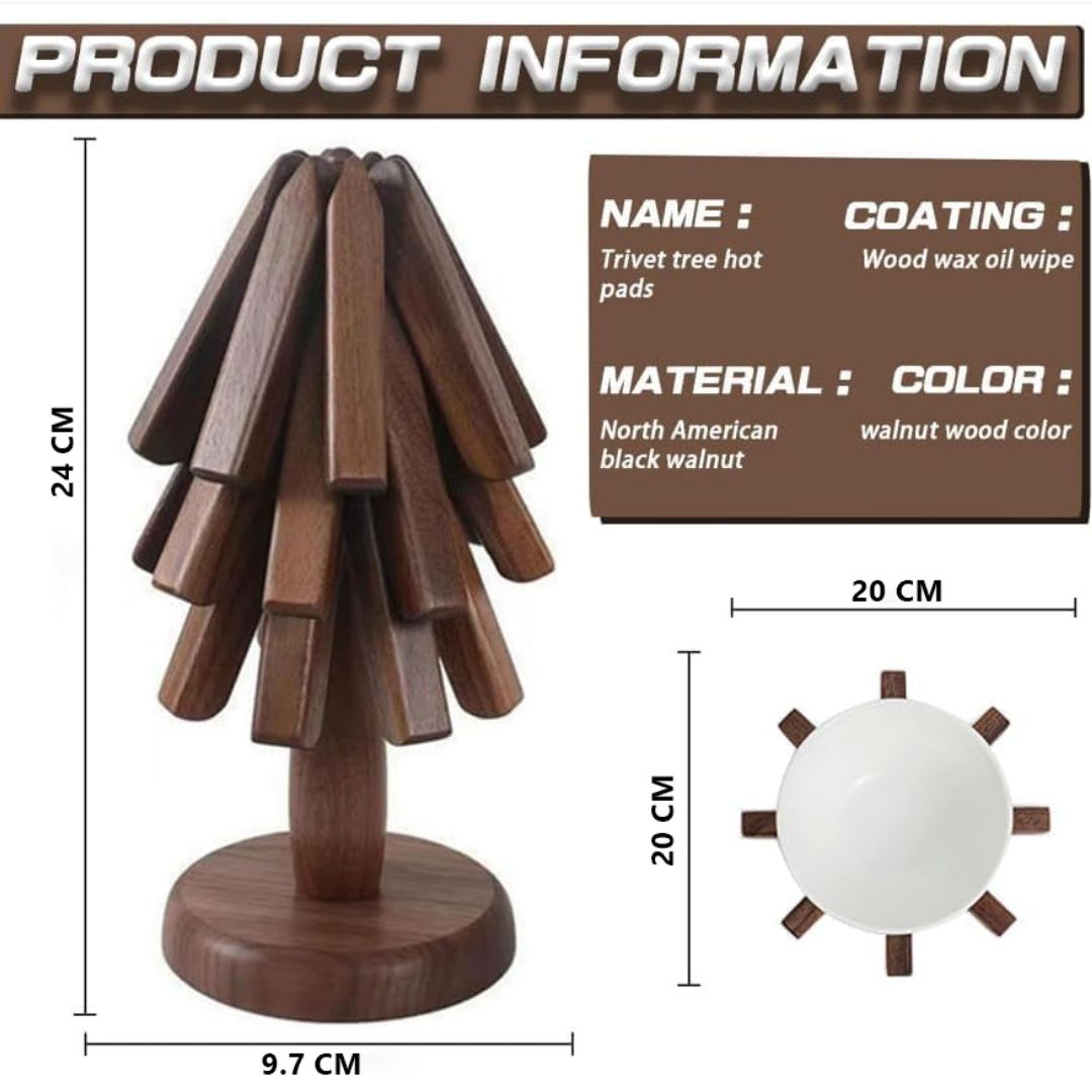 Tree Shape Trivet Set: Made of wood, this set includes 3 trivets and a bracket, protecting countertops and tables from hot dishes.