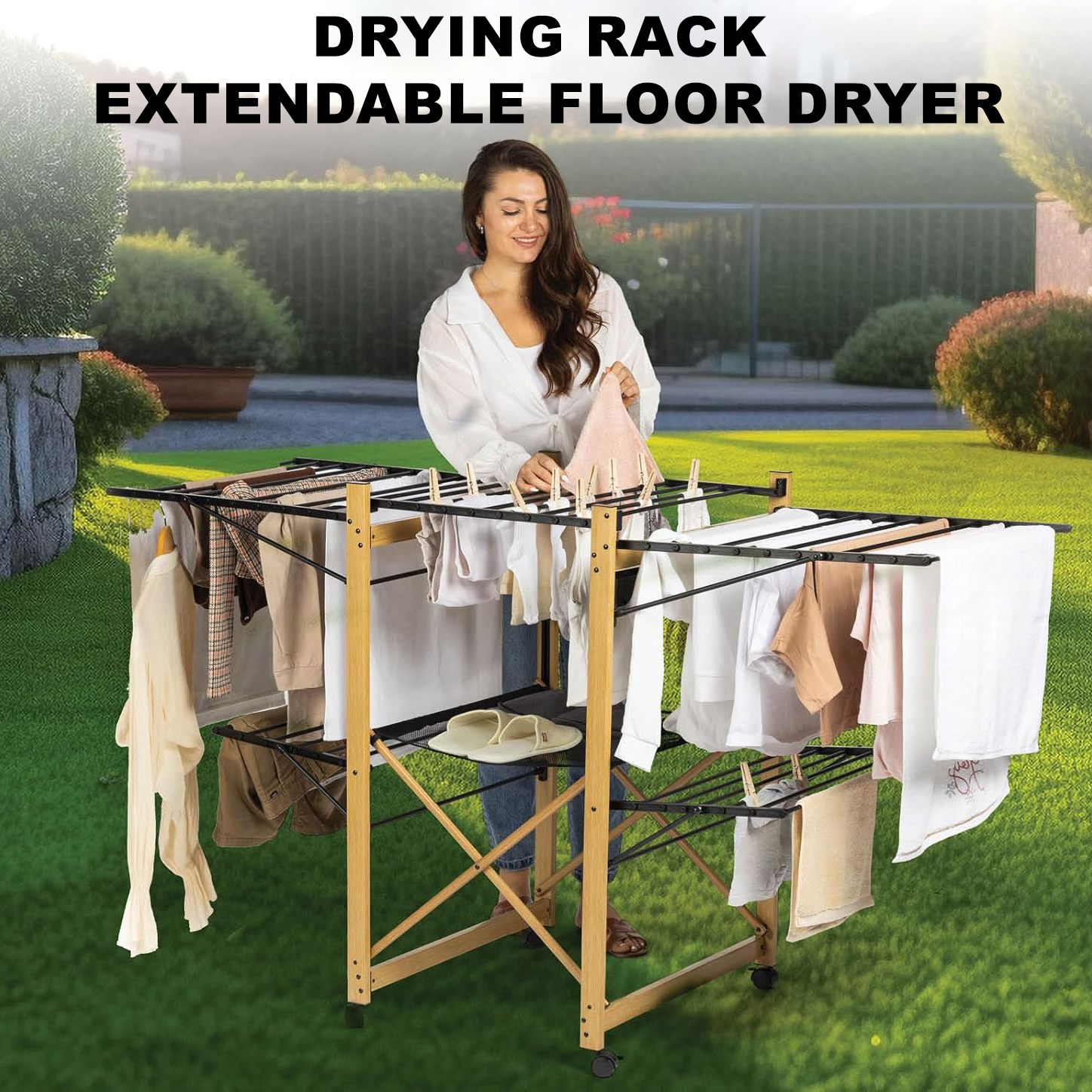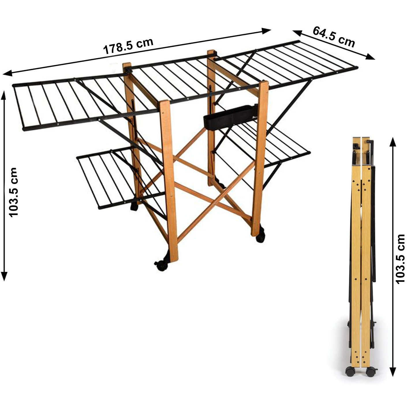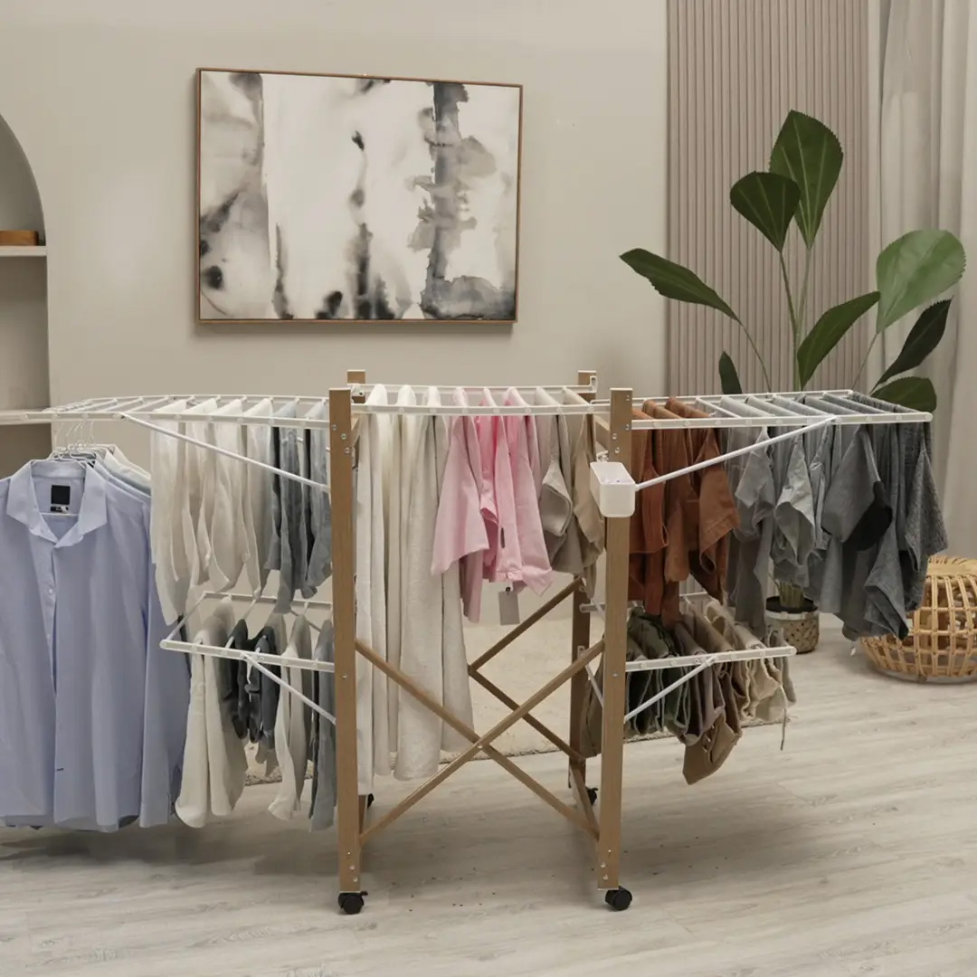 Versatile Drying Options: The Vitapur dryer adapts to your needs with its adjustable wings. The top floor is perfect for larger items such as blankets, sheets, and tablecloths, while the bottom floor is ideal for smaller pieces like T-shirts, dishcloths, and underwear.