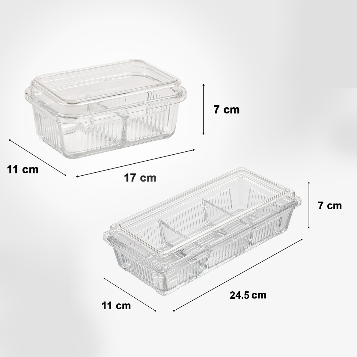 Two Convenient Sizes for Versatility – This set includes two different sizes to suit your serving needs. The larger tray features three compartments and measures 24.5L x 11W x 7H cm, while the smaller tray has two compartments and measures 17L x 11W x 7H cm. These varying sizes allow for flexible use, whether you're hosting a party or preparing a simple snack.