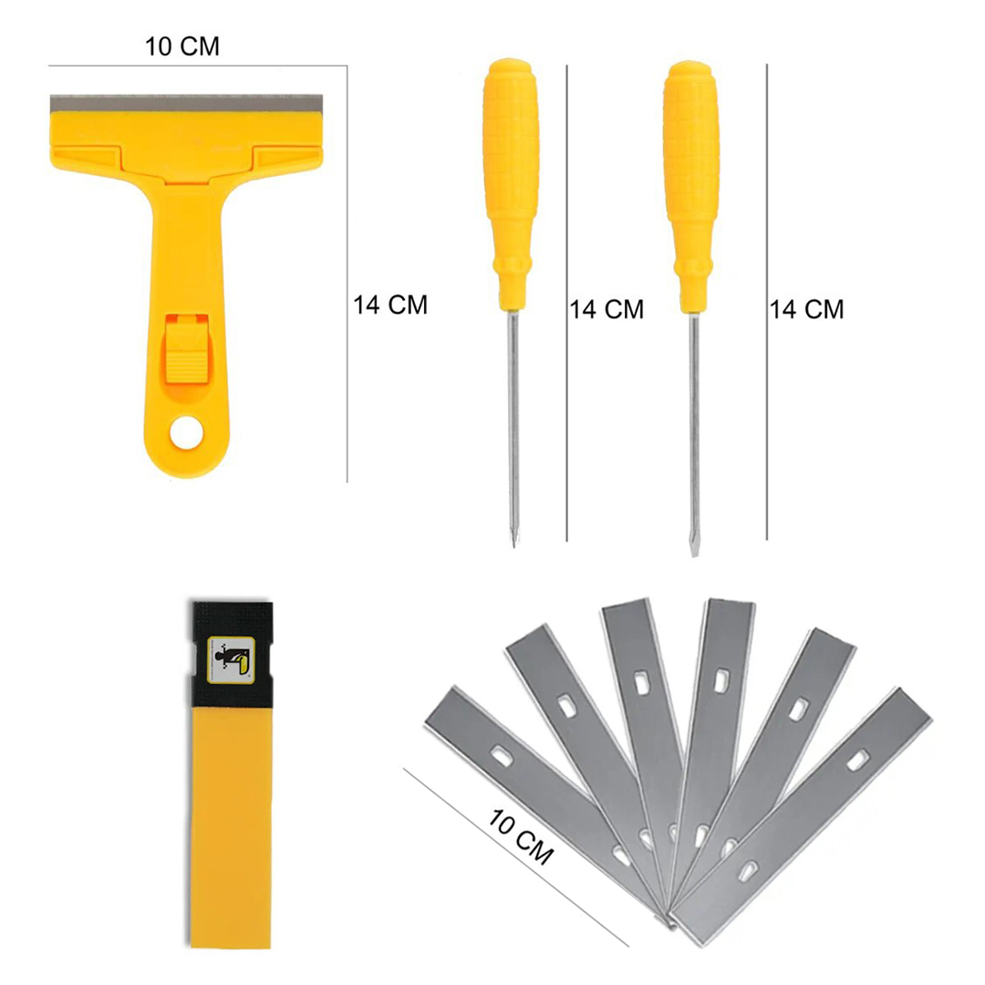 Versatile Cleaning Tool – The Razor Scraper with an ABS plastic handle effectively removes dirt, glue stains, and decoration residue from surfaces like glass, marble, ceramic tiles, and kitchen utensils.