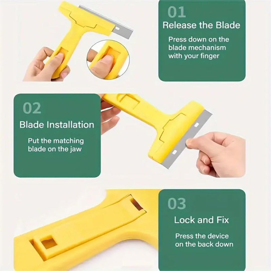 Easy Blade Replacement & Safe Use – The scraper features a simple button for easy blade replacement, allowing you to quickly and safely switch blades, ensuring optimal performance and safety during use.
