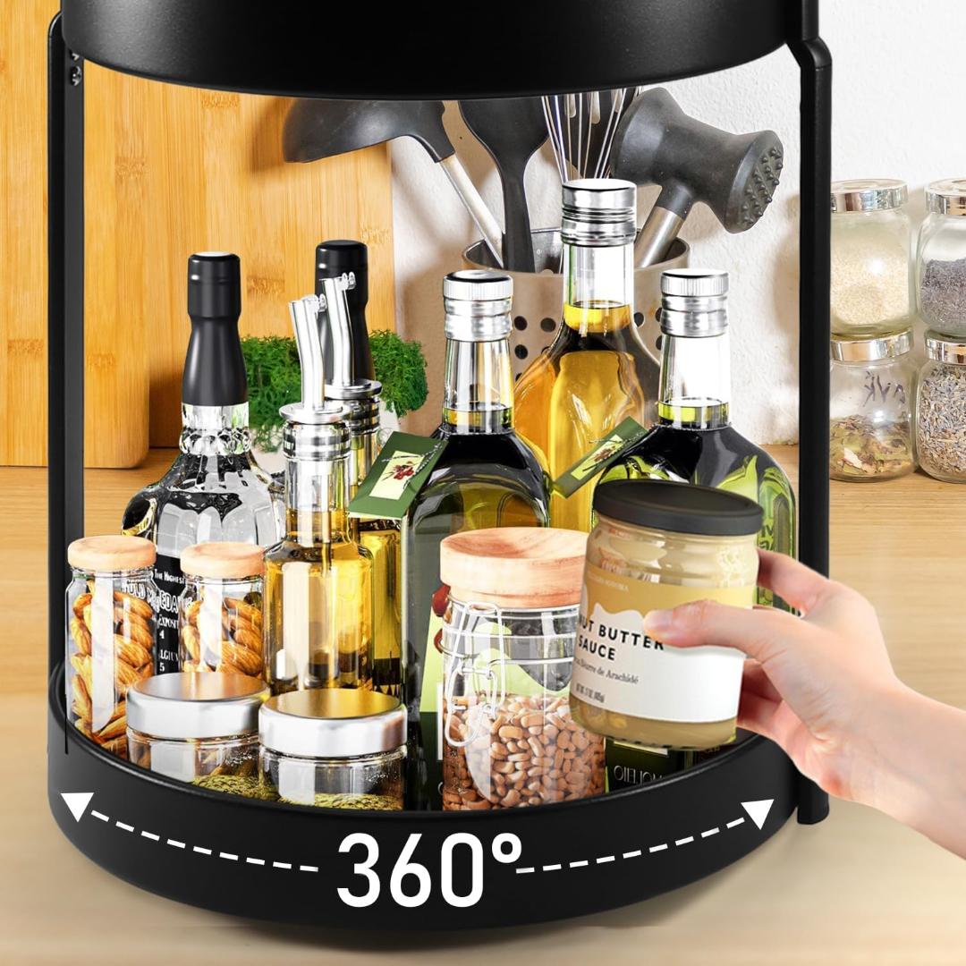 Equipped with a durable steel rotating shaft and a stable non-slip base, this organizer ensures effortless 360° spinning. Easily access all your items without hassle—ideal for use in the kitchen, bathroom, or office.