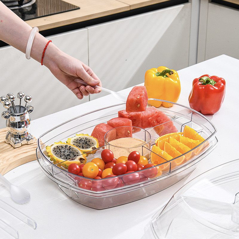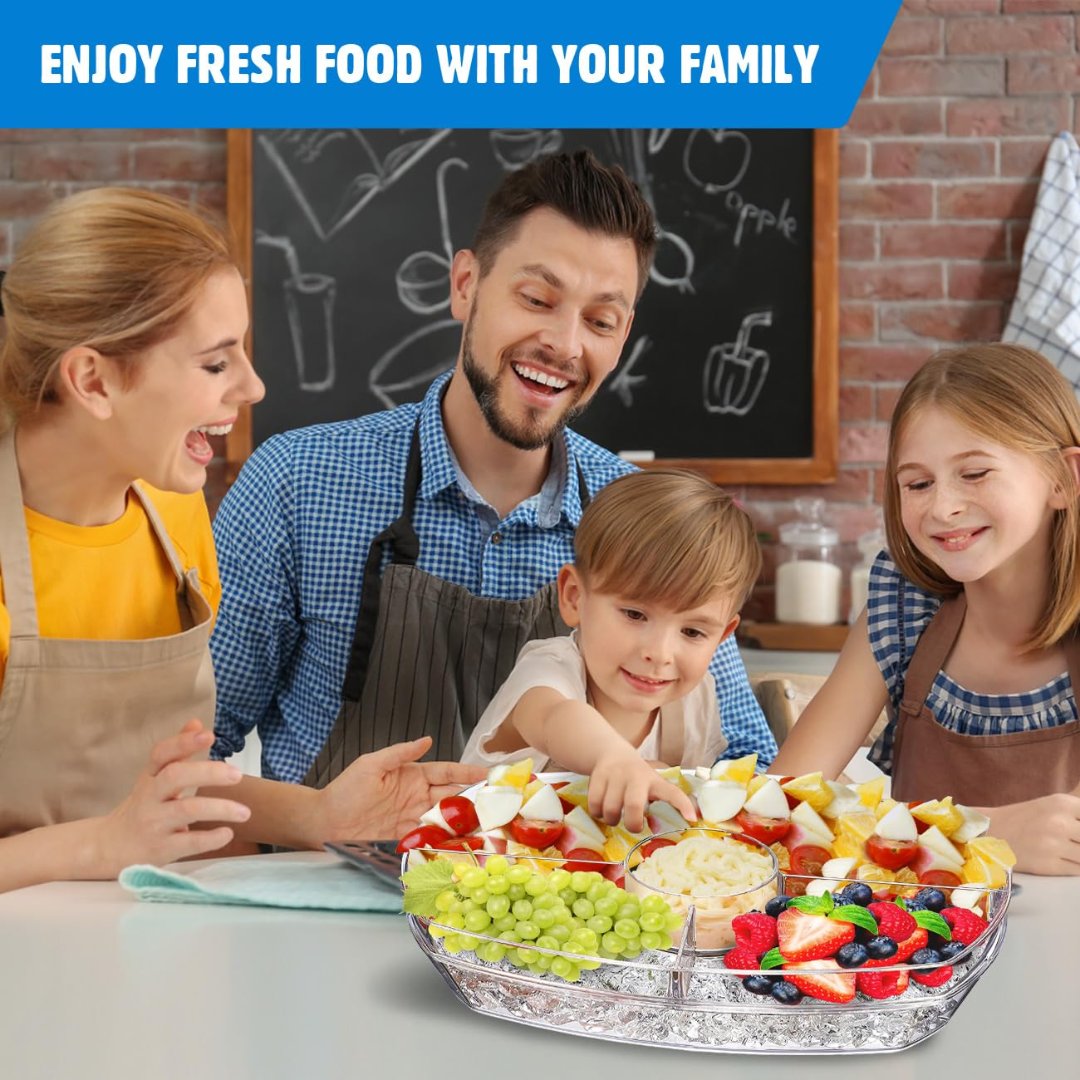 Innovative 3-Tier Design – Features a transparent 3-tier structure with a lid to keep food fresh and bug-free. Includes a 4-compartment ice tray at the bottom to keep dishes chilled and perfectly displayed.