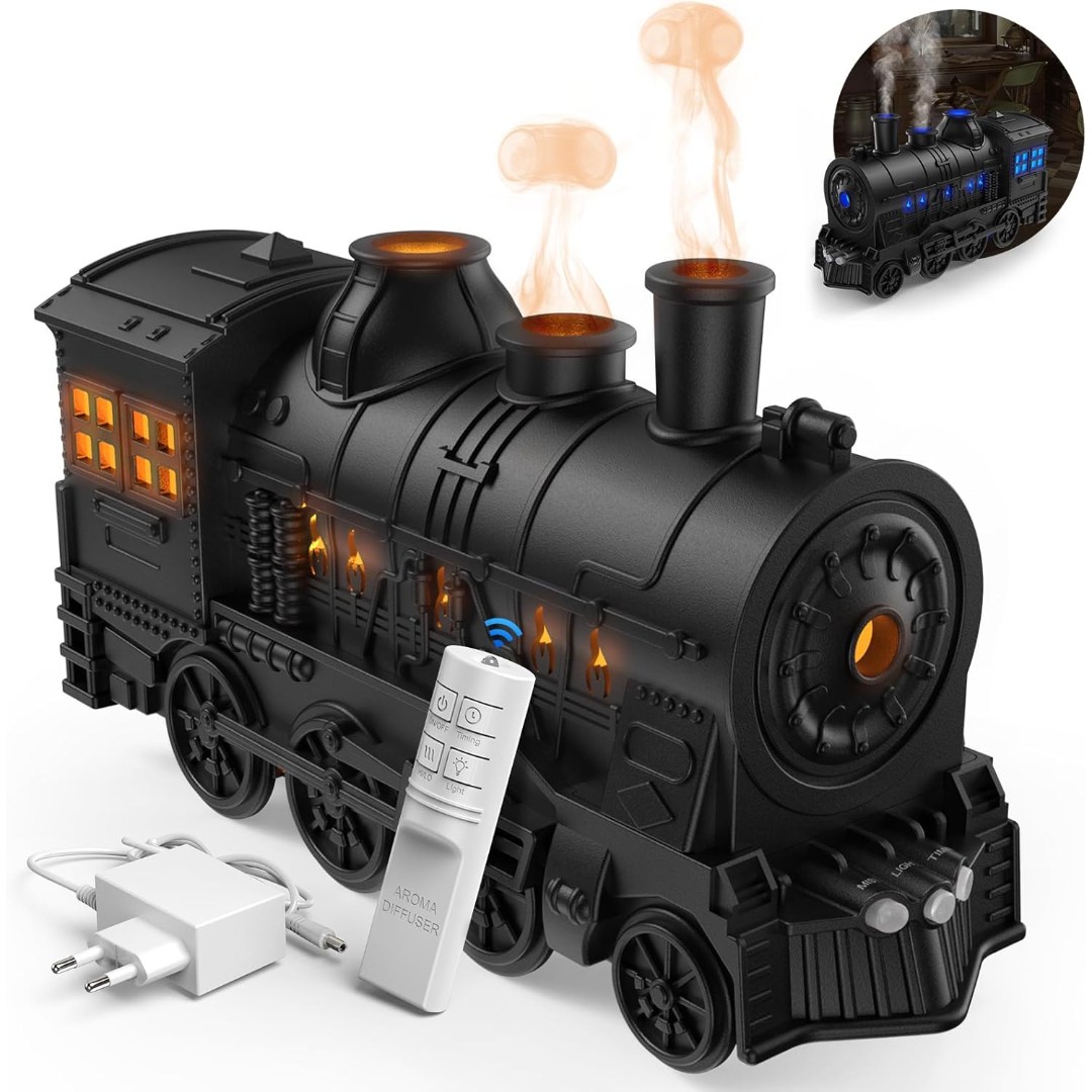 Vintage Train-Inspired Design: A delightful 300ml diffuser styled like a classic train engine, blending nostalgia and charm into your home, office, or bedroom décor.