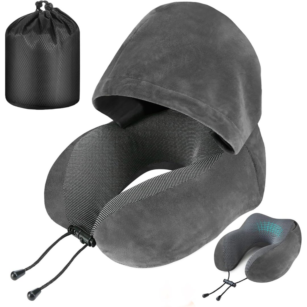 Here’s a simplified 5-point product description for your Hooded Travel Neck Pillow: