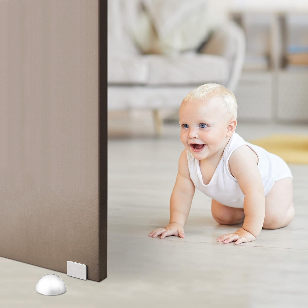 Compact & Stylish Design: Smaller than standard door stops, with a sleek look that prevents slamming while enhancing floor aesthetics.