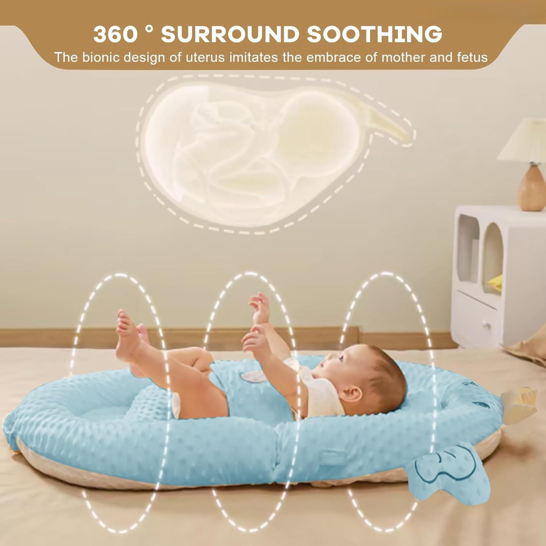 Multifunctional Design – This baby bed serves multiple purposes: anti-spitting milk with a 15° slope, promotes restful sleep, supports sitting posture for learning, and helps babies lift their heads during tummy time (ideal for 3–6 months).