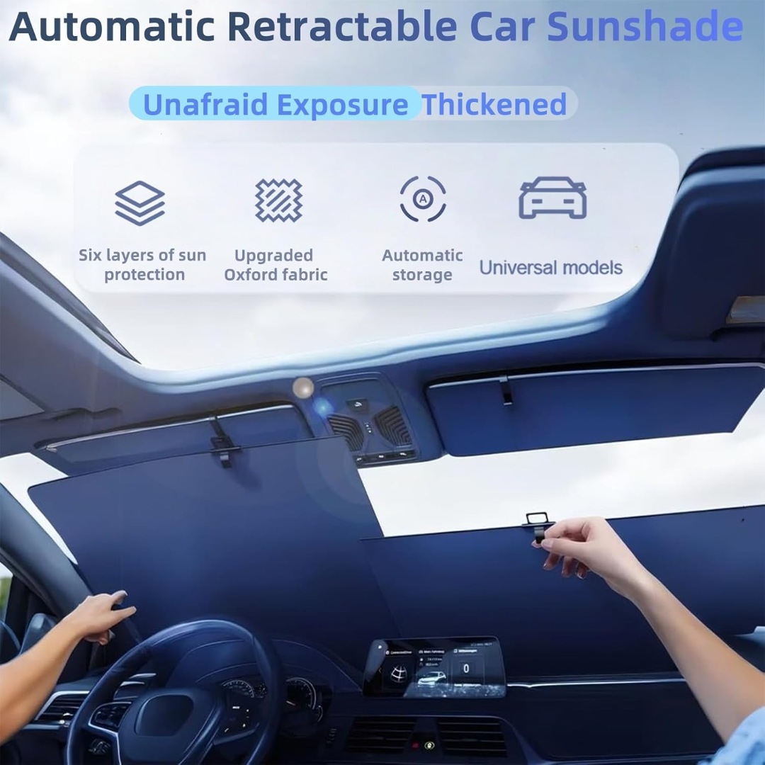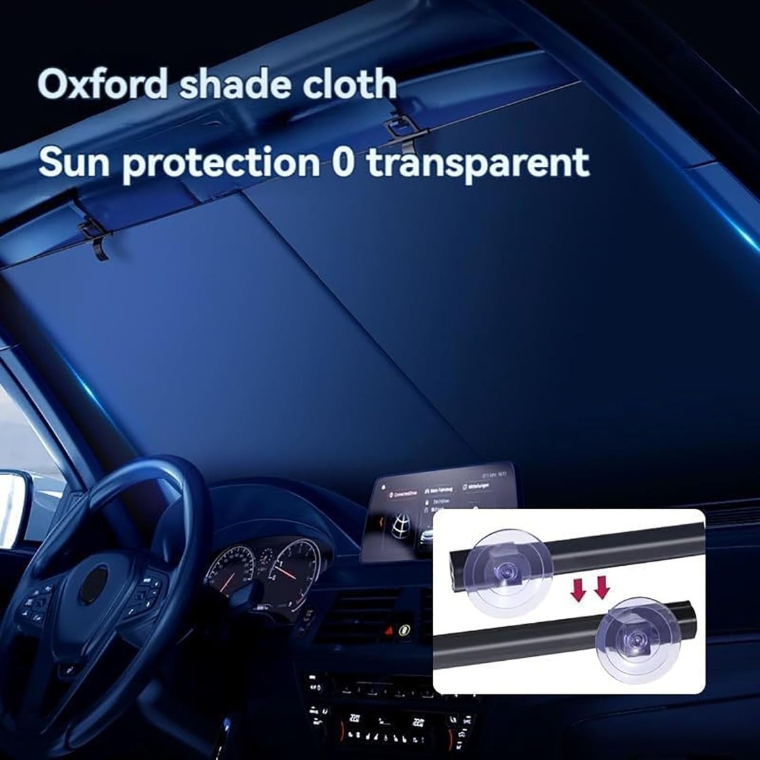 Discreet & Safe Installation – Mounts securely at the base of the windshield without dangling parts, ensuring a clear driver’s view; simply pull up and hook for instant sun and heat blocking.