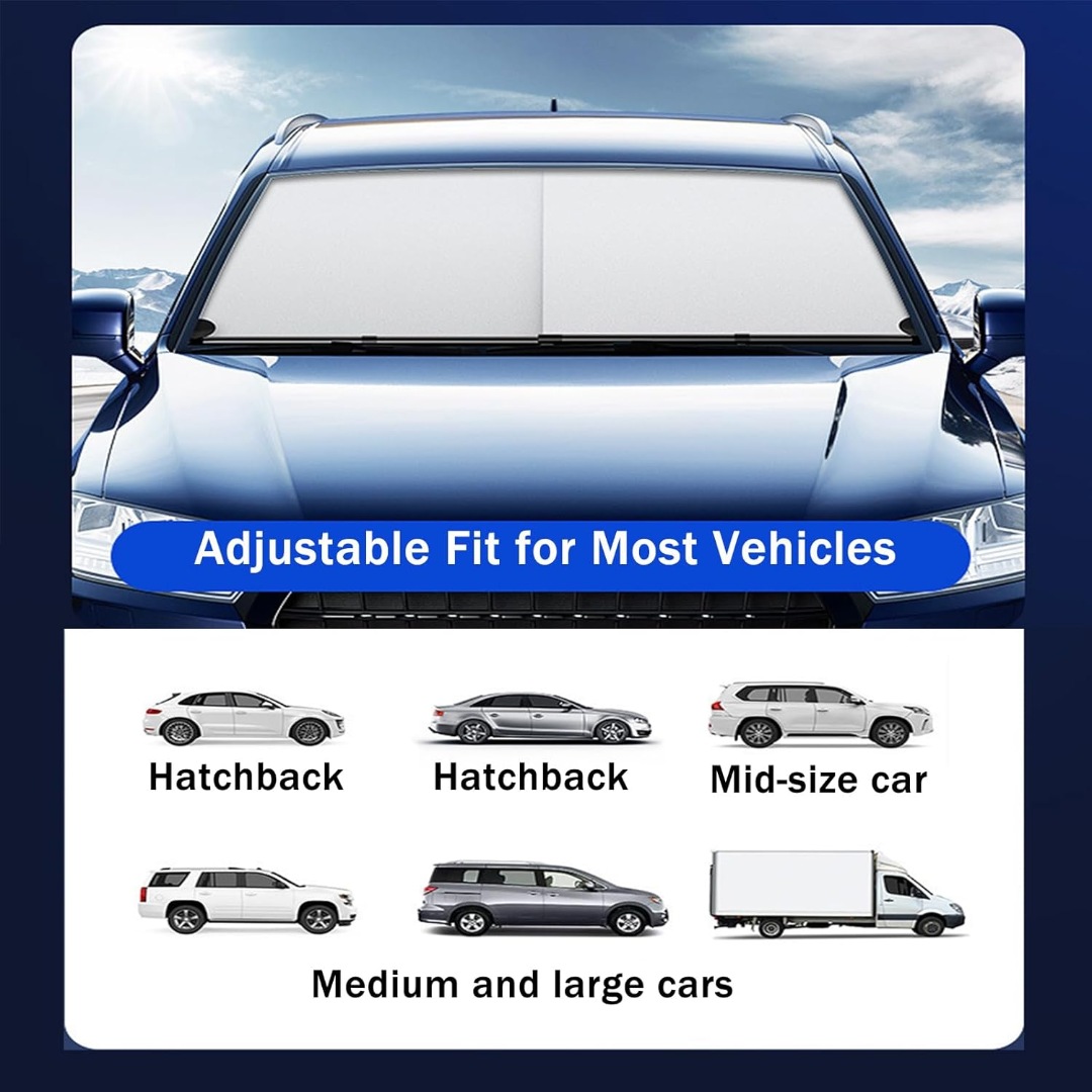 Universal Adjustable Fit – Designed to suit most vehicles, with a height of 40.5" and adjustable width from 29.1" to 59.1", making it compatible with sedans, hatchbacks, SUVs, and MPVs.