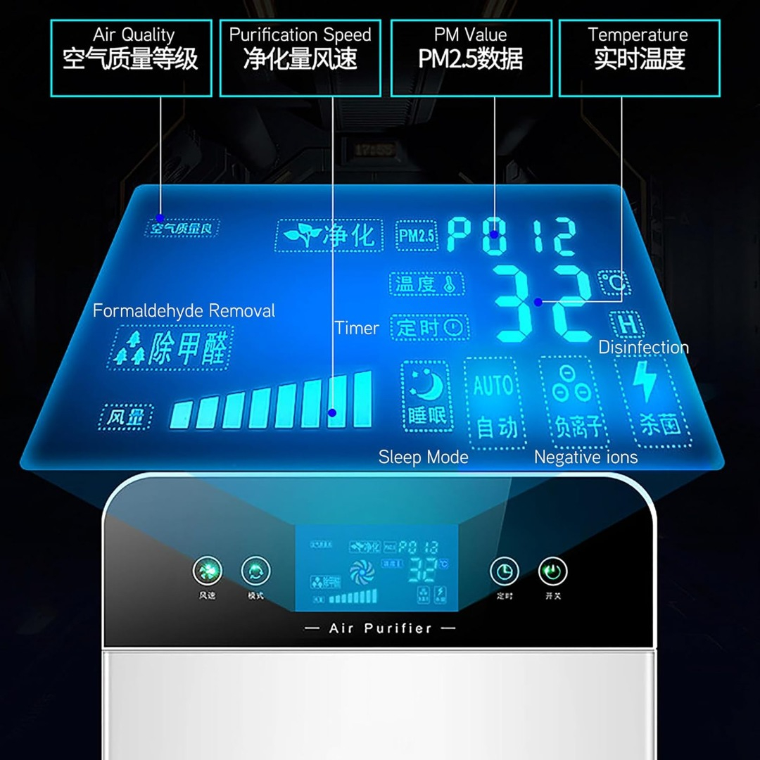 Advanced Filtration & Sterilization – Filters PM2.5 particles, eliminates formaldehyde, and sterilizes airborne germs with a built-in ionizer.