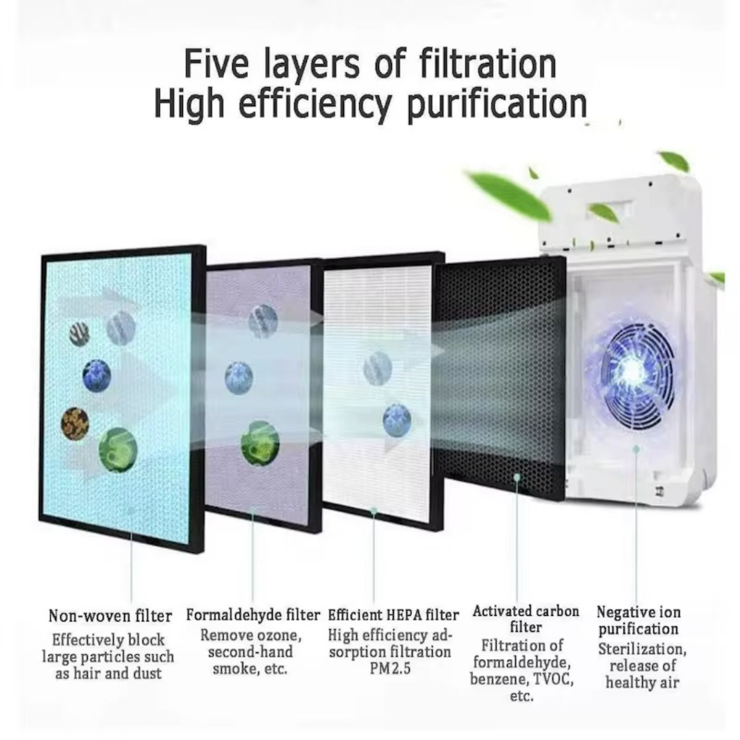 Comprehensive Air Purification – Effectively removes dust mites, mold spores, bacteria, allergens, pet dander, viruses, smoke, and unpleasant odors for a cleaner, healthier home environment.