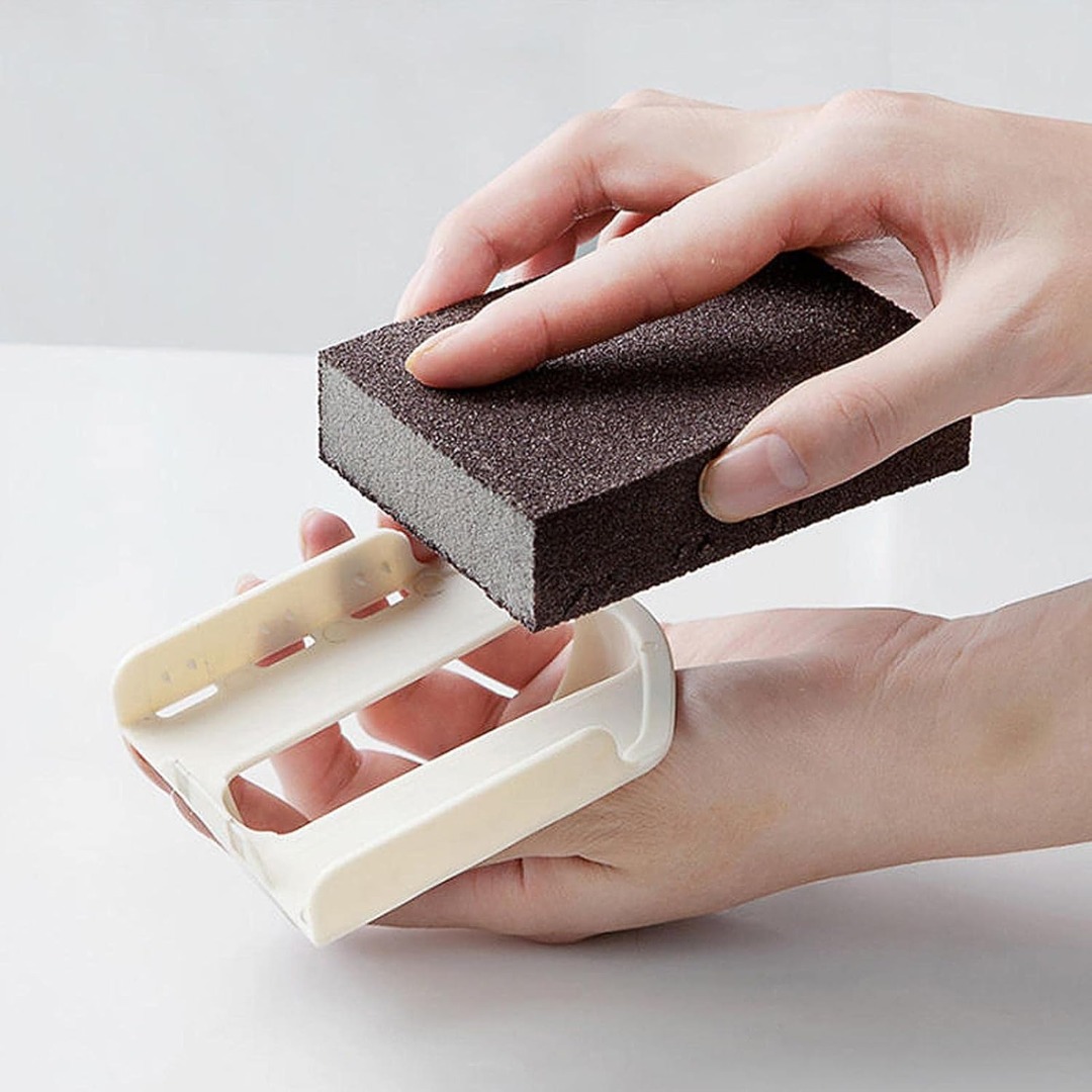 Magic Emery Sponge – Made with nano carborundum technology, this high-density sponge is tough, elastic, and effective for removing stubborn stains on pans, sinks, and utensils, as well as sanding wood, metal, and other surfaces.