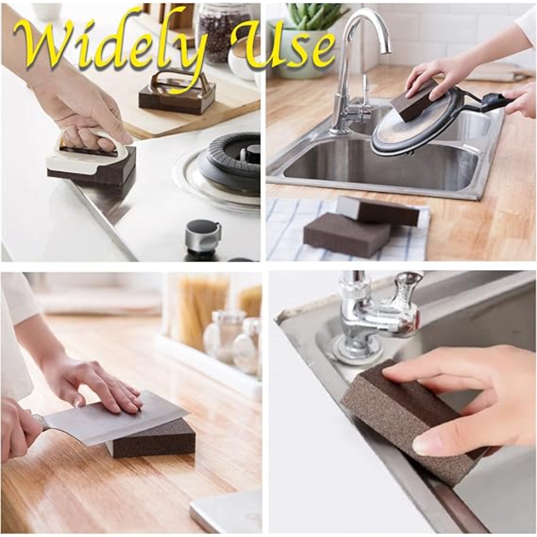 Rust Eraser for Kitchen & More – Works as a powerful rust and stain remover without chemicals, making cleaning kitchens, bathrooms, and cars faster and easier. Each sponge measures 10X7.2X2.5 cm and includes a handle for easy use.