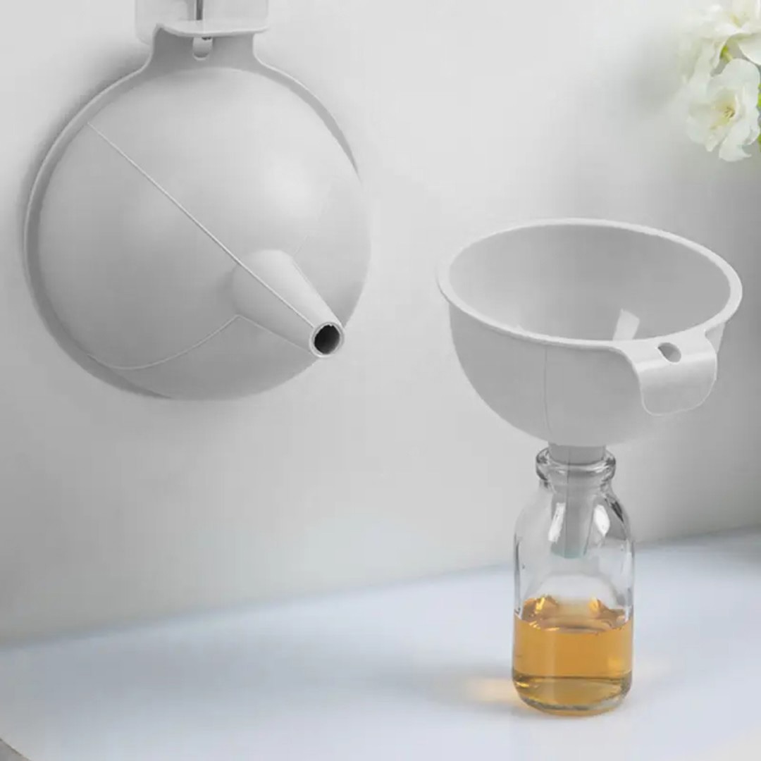 Convenient Hanging Hook – Small tab lets you rest the funnel on bottle rims while pouring and hang it up to dry/storage.