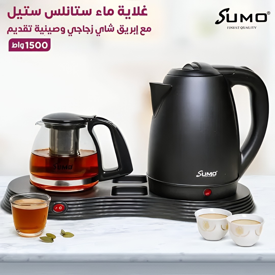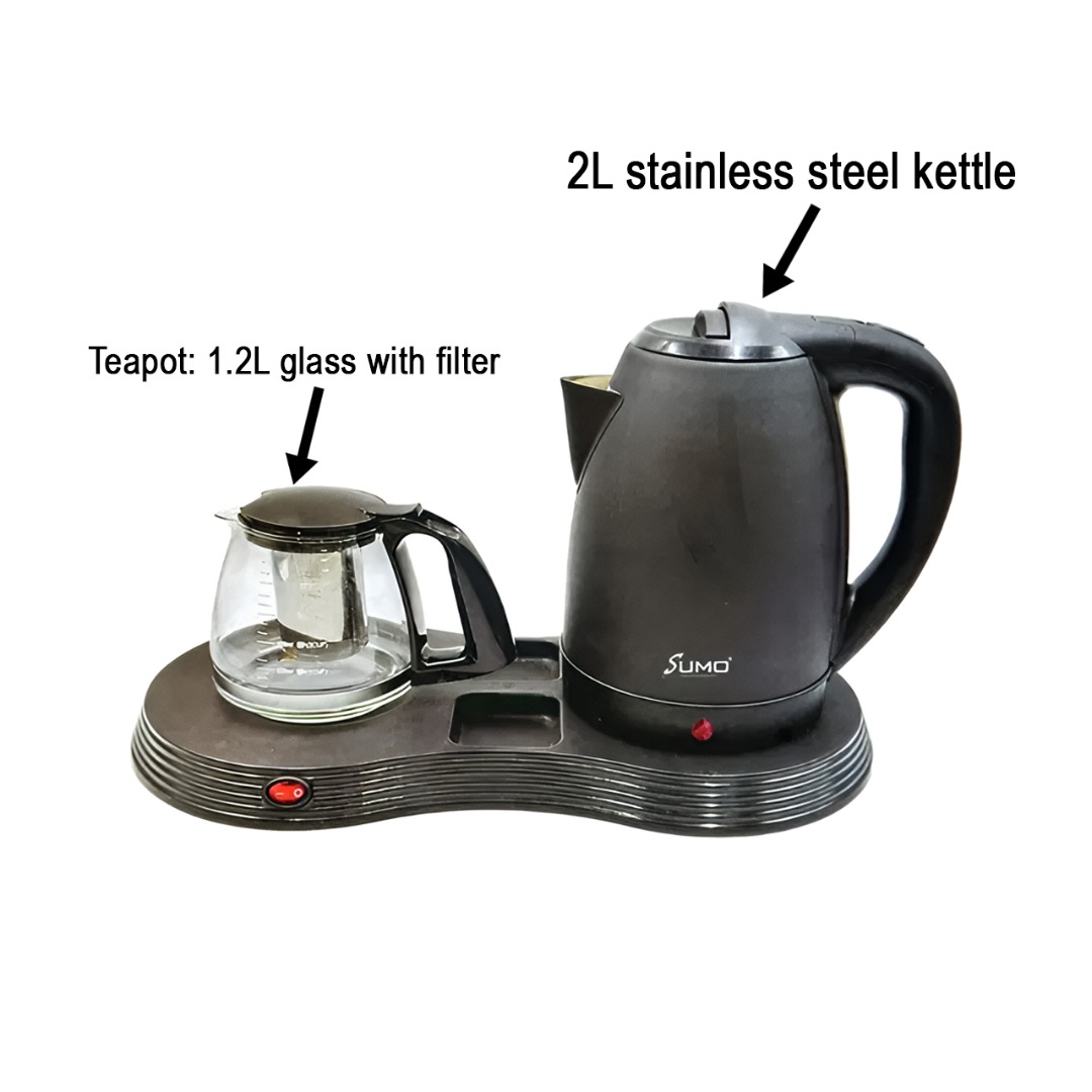 Elegant 2-in-1 Design: Includes a 1.8L stainless steel electric kettle and a glass teapot with infuser, perfect for brewing tea or boiling water simultaneously.