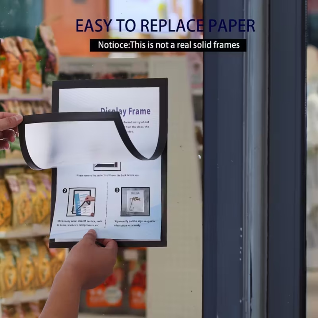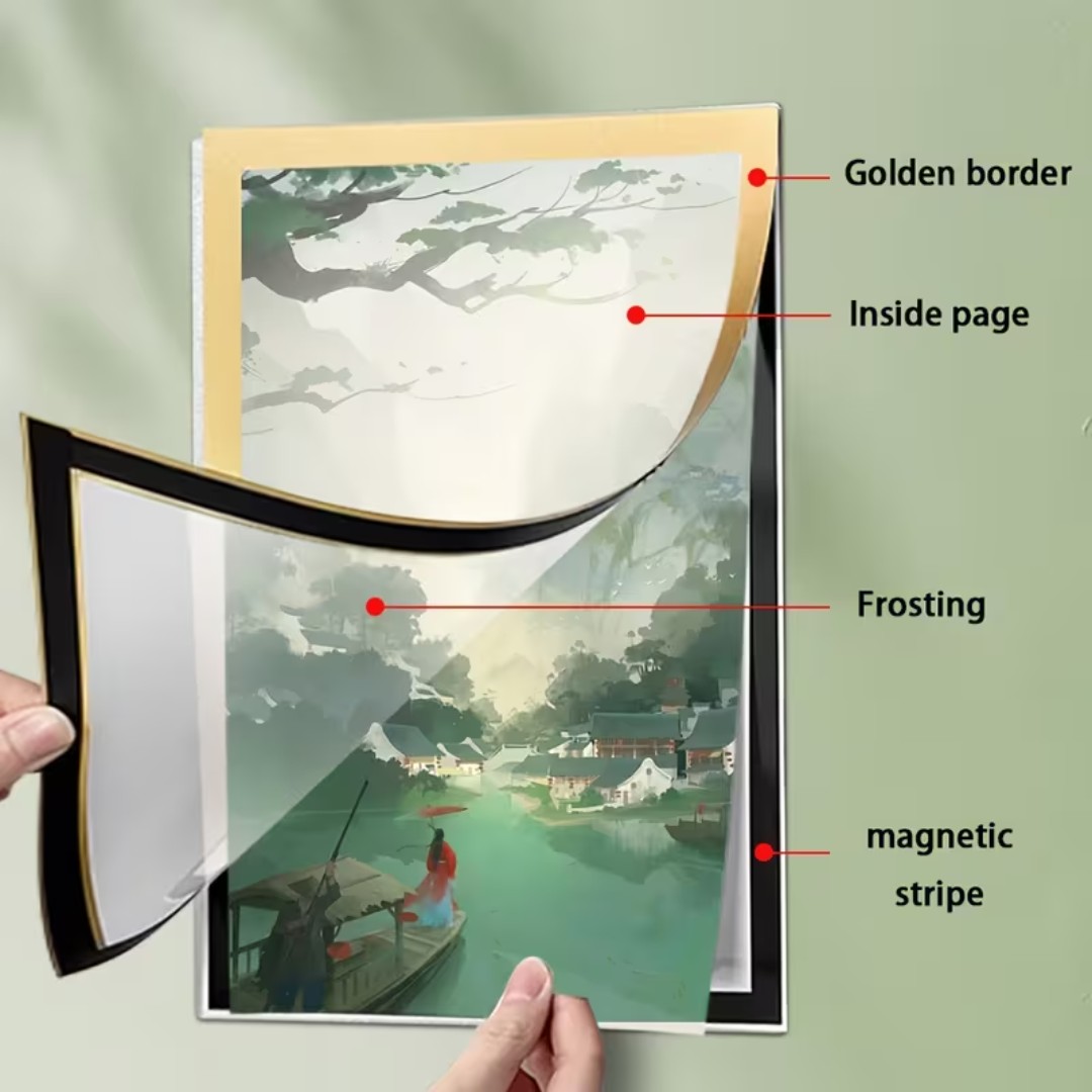 Strong Magnetic Frame Design: Features powerful magnetic strips that allow quick insertion and replacement of documents while keeping them securely in place without slipping or falling.