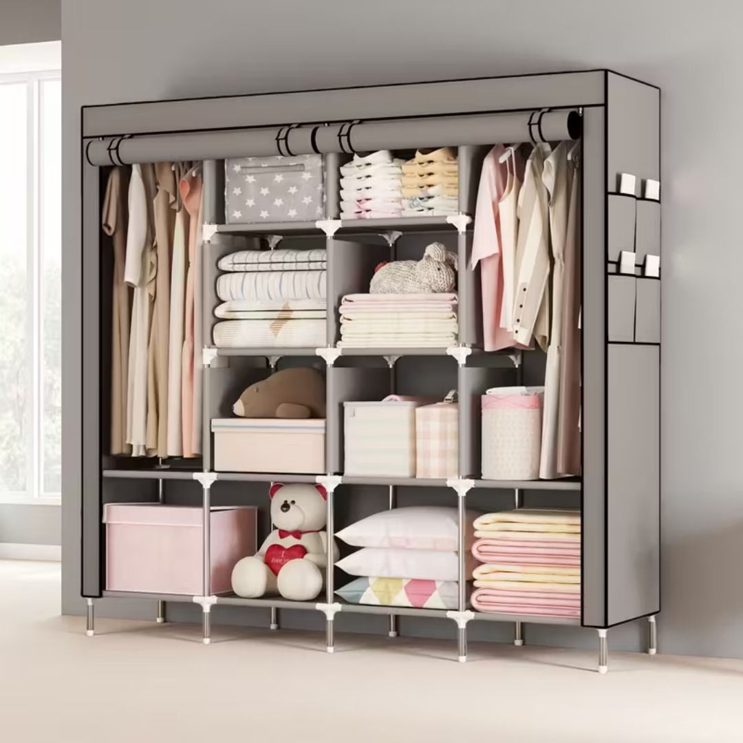 This fabric wardrobe is designed for those who need a functional, space-efficient, and affordable storage solution for their home.