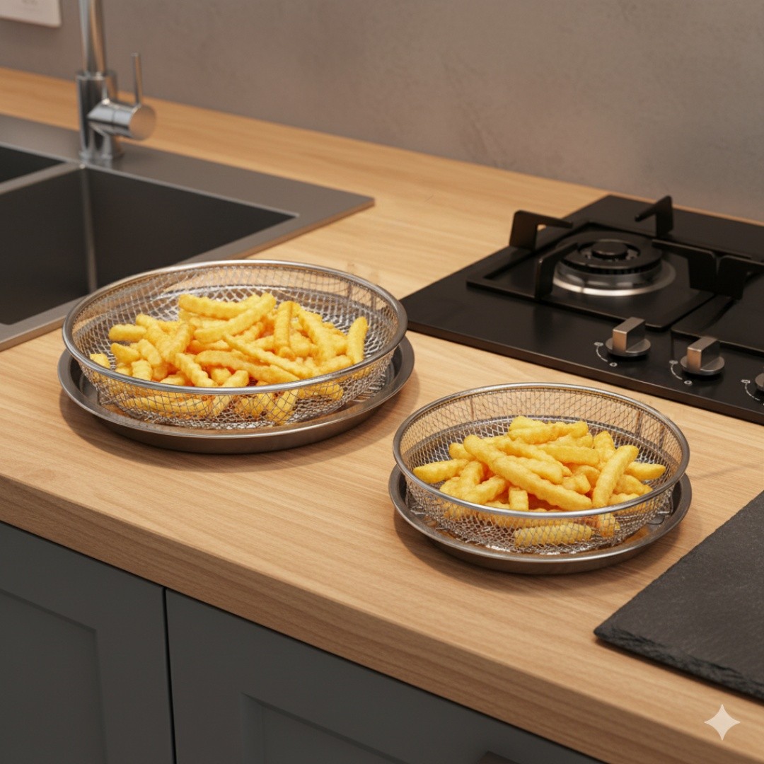 Perfect Crispiness: 360° mesh design ensures even airflow for golden, crispy results on fish, chips, roasted chicken, and vegetables.