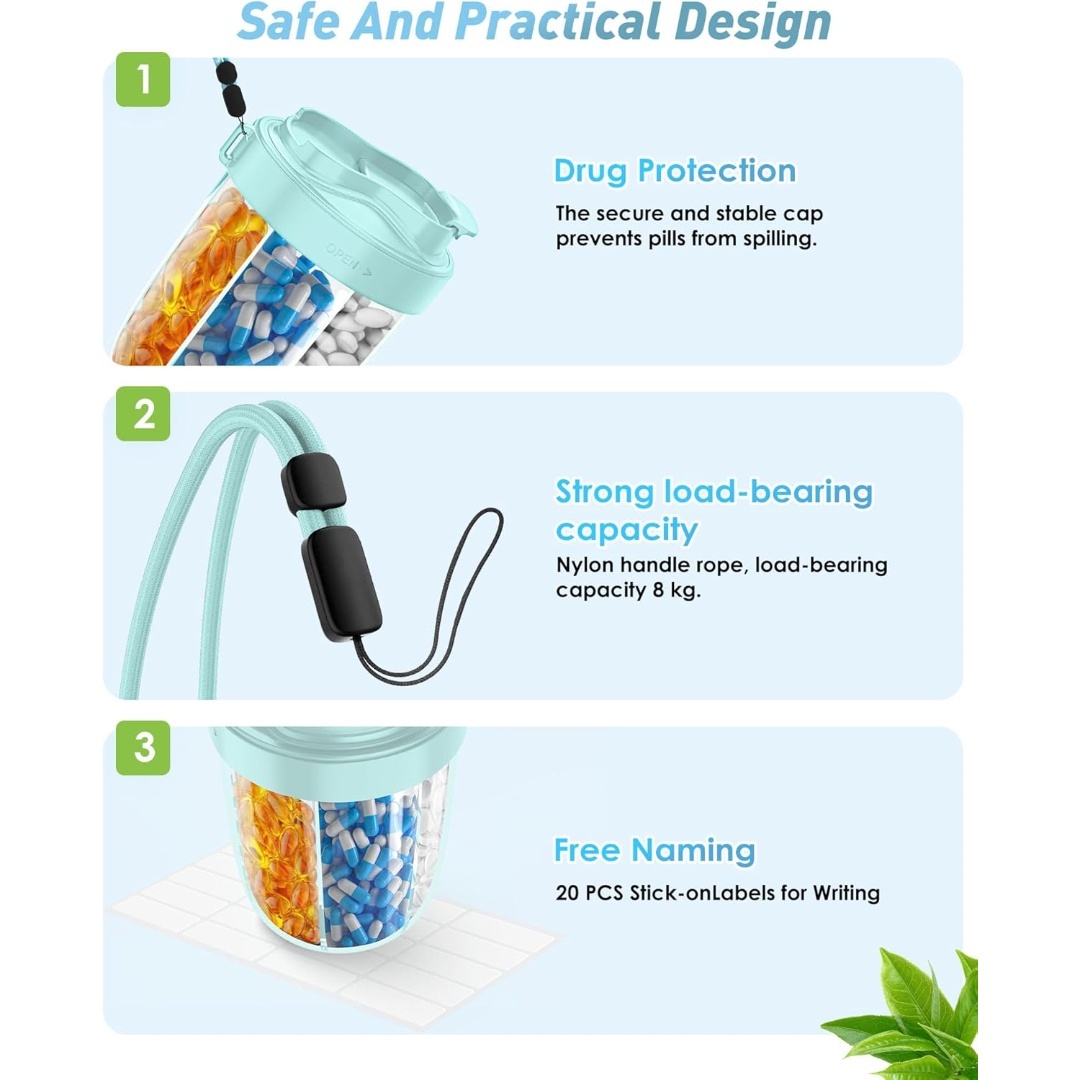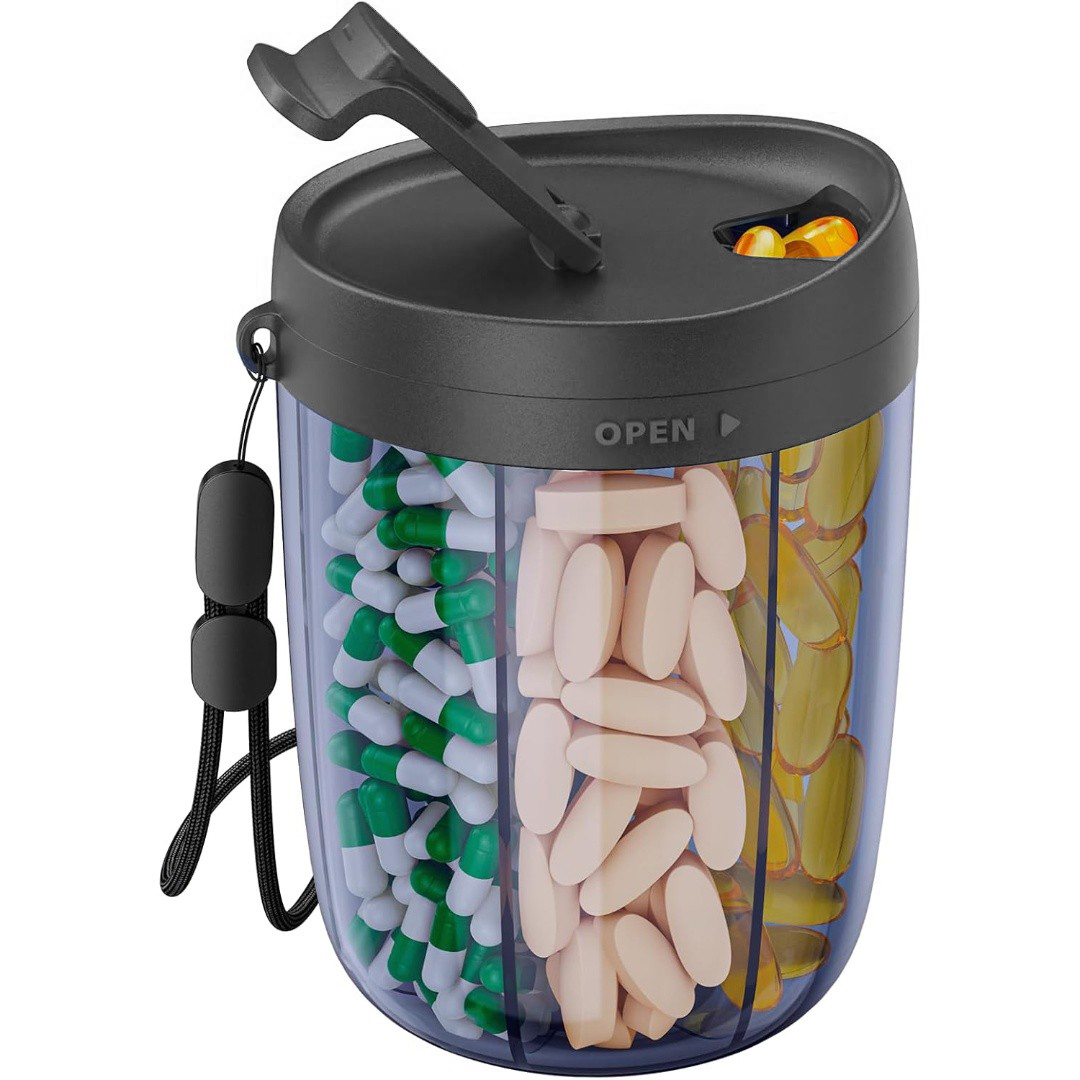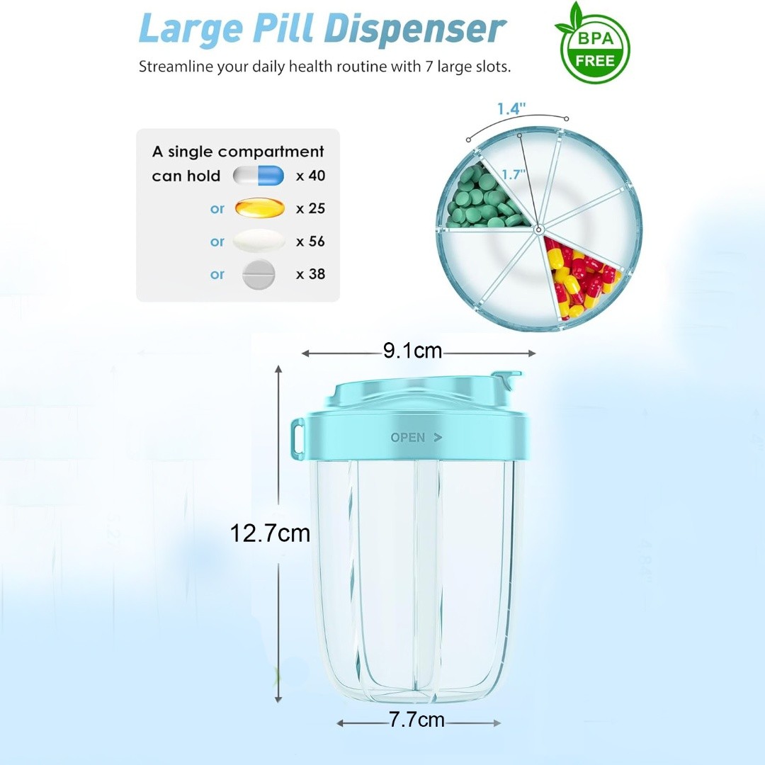 Easy Access Design: Features a smooth rotating lid and wide openings for quick refilling and effortless pill retrieval during daily use.