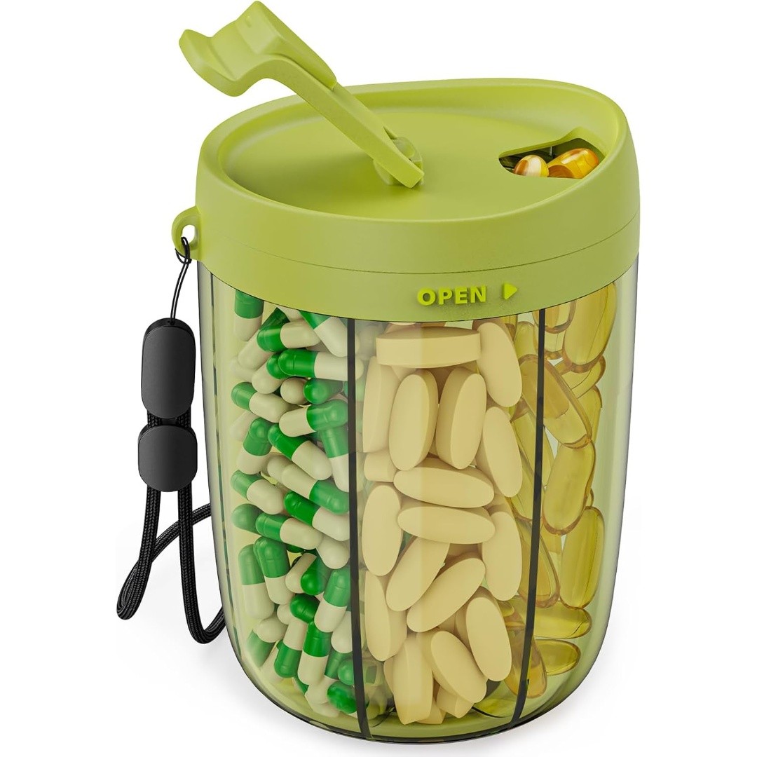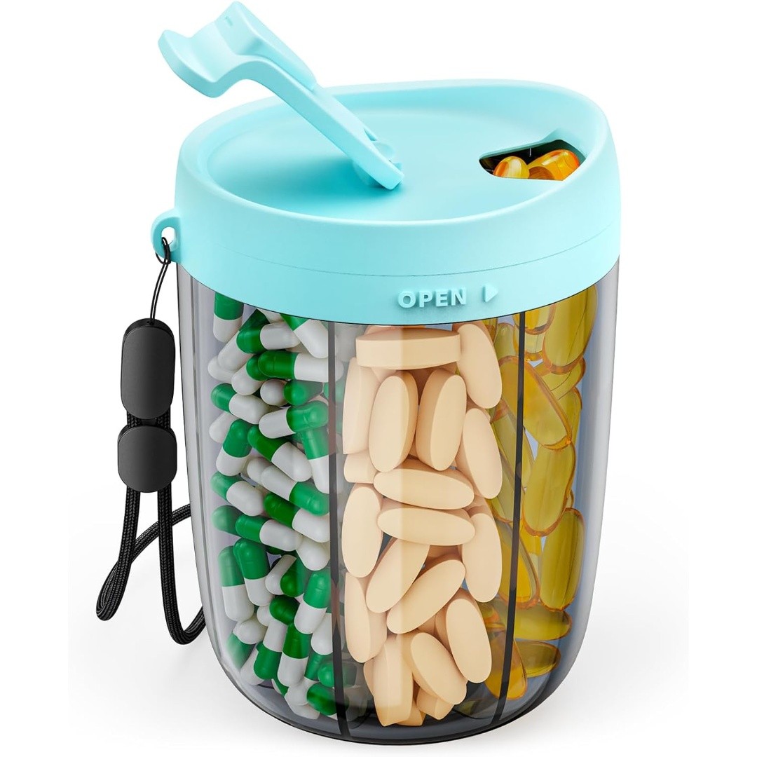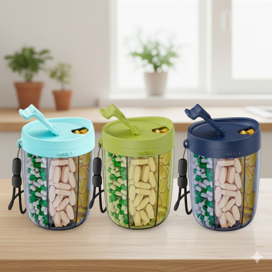 Easy Access Design: Features a smooth rotating lid and wide openings for quick refilling and effortless pill retrieval during daily use.