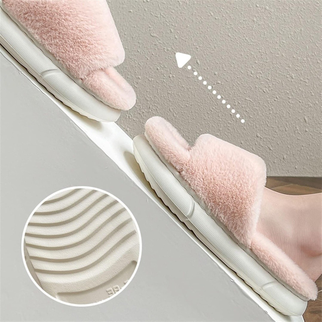 Cozy Plush Slippers: Crafted with ultra-soft faux fur that wraps your feet in warmth and comfort for all-day relaxation.
