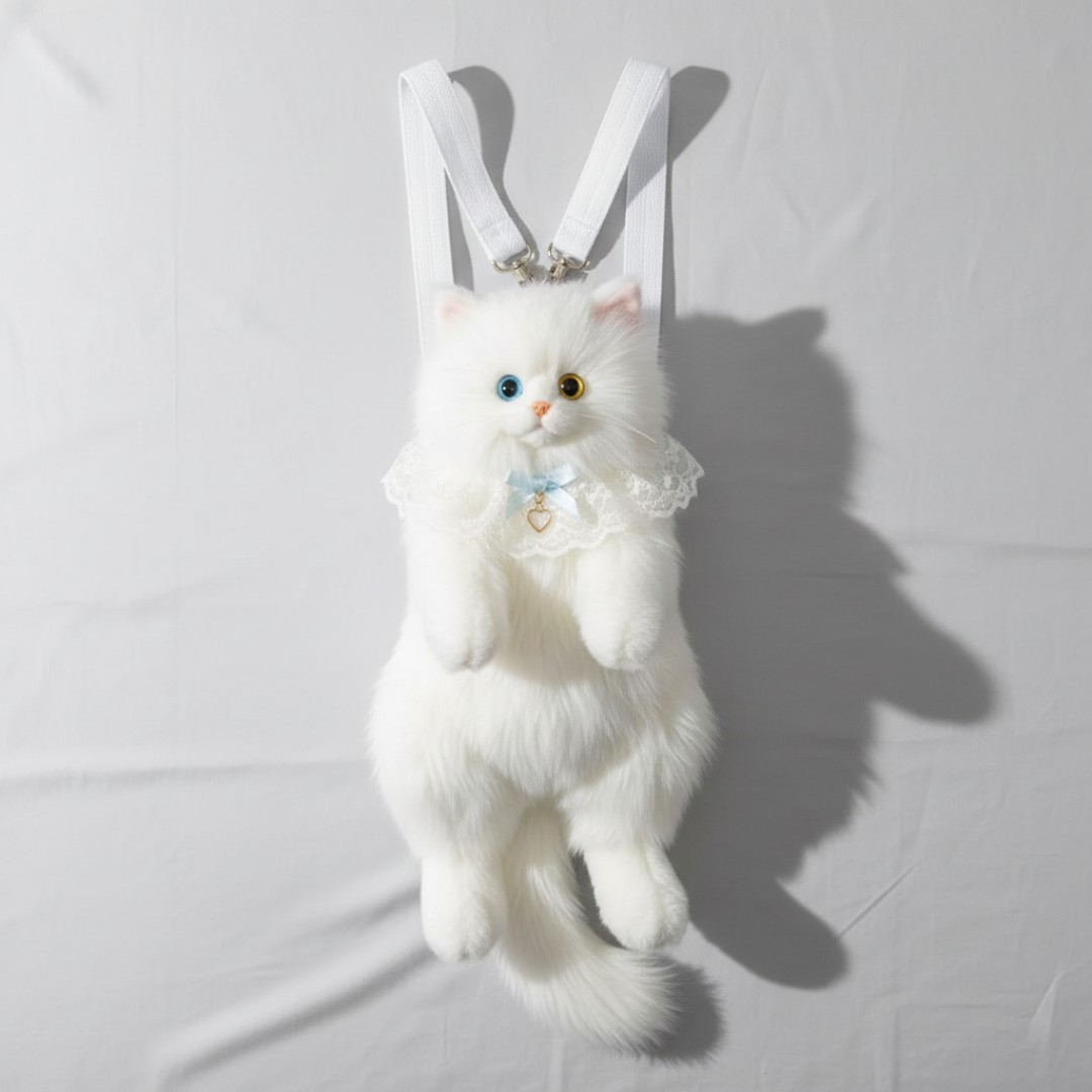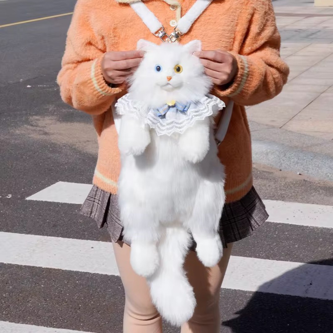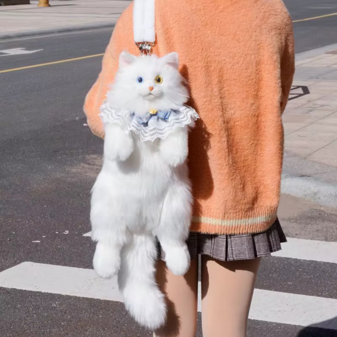 Lifelike Cat Design: Crafted to resemble a realistic, fluffy cat with adorable features, making it a standout accessory for cat lovers.