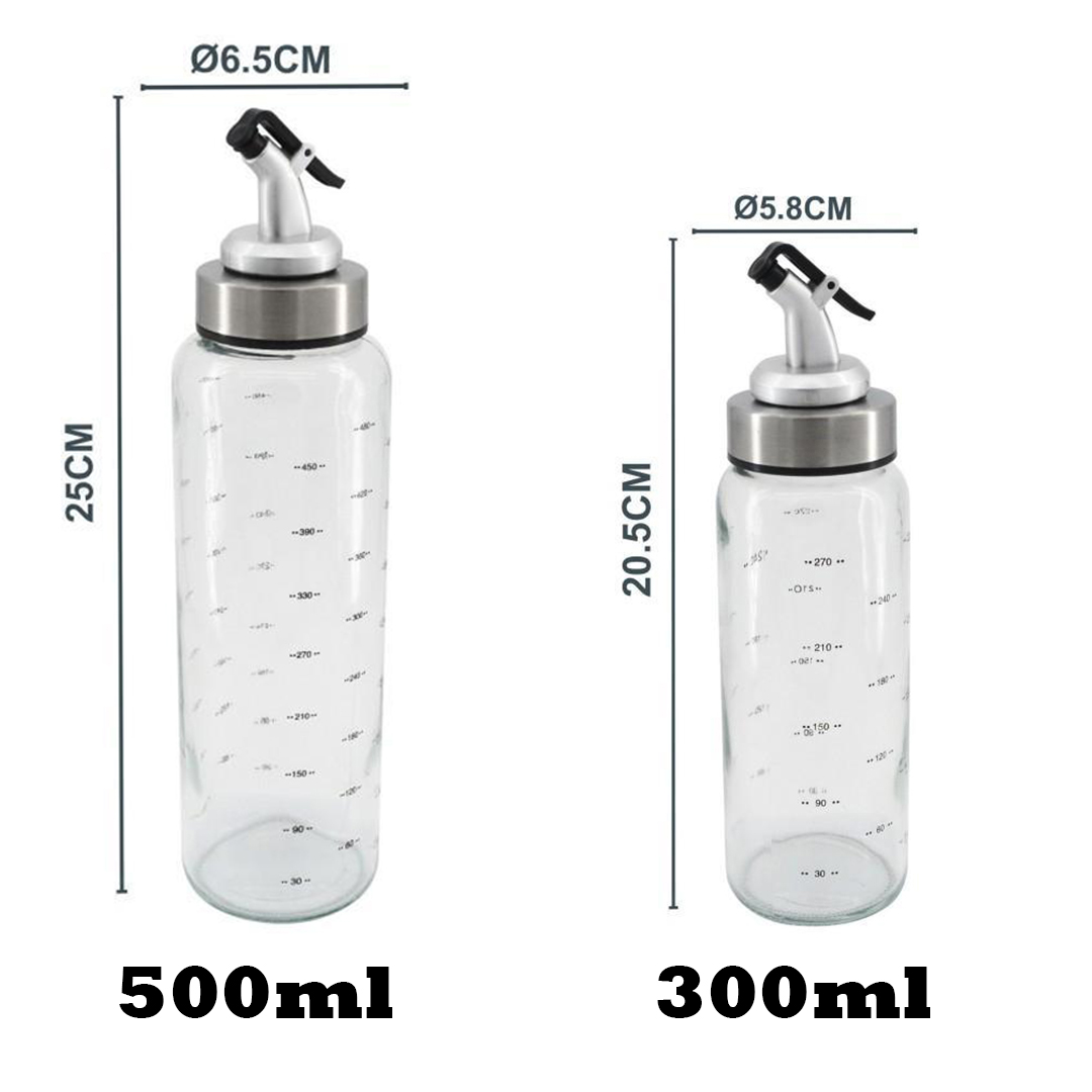 Multiple Size Options: Available in 300ml and 500ml capacities, ideal for storing olive oil, vinegar, soy sauce, or other liquid condiments.