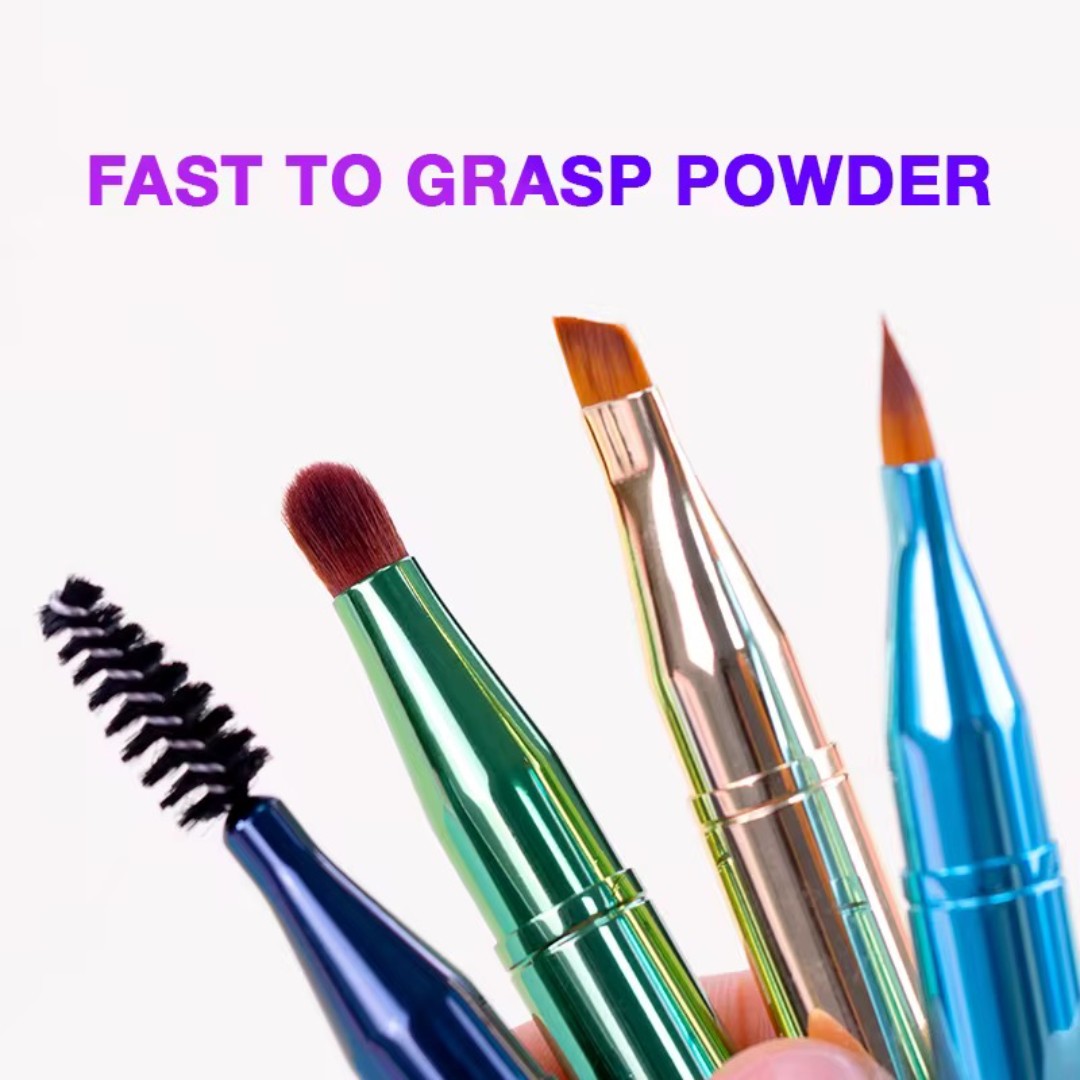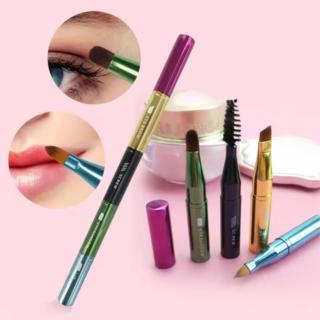 Four-in-One Multifunction Design: Combines lip brush, eyeshadow brush, angled eyebrow brush, and spiral mascara brush in one compact tool for complete eye and lip makeup.