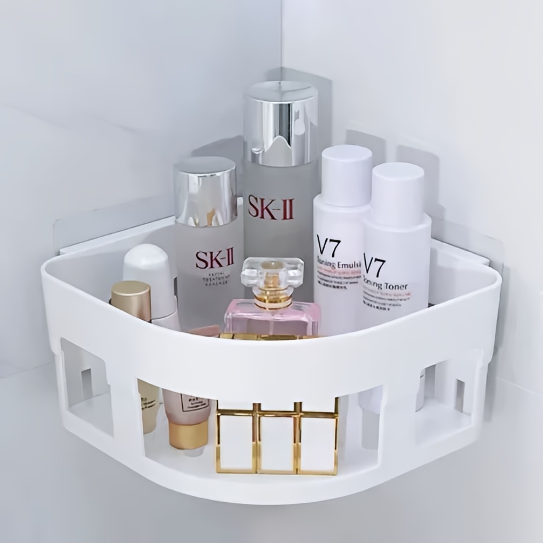 Space-Saving Corner Storage: Compact corner-fit design maximizes unused wall space and is ideal for storing shampoos, soaps, cosmetics, and bathroom accessories.
