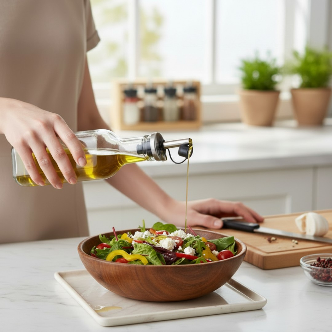 Multi-Purpose Kitchen Use: Perfect for olive oil, vinegar, soy sauce, salad dressings, and liquid seasonings, combining functionality with a clean, modern kitchen look.